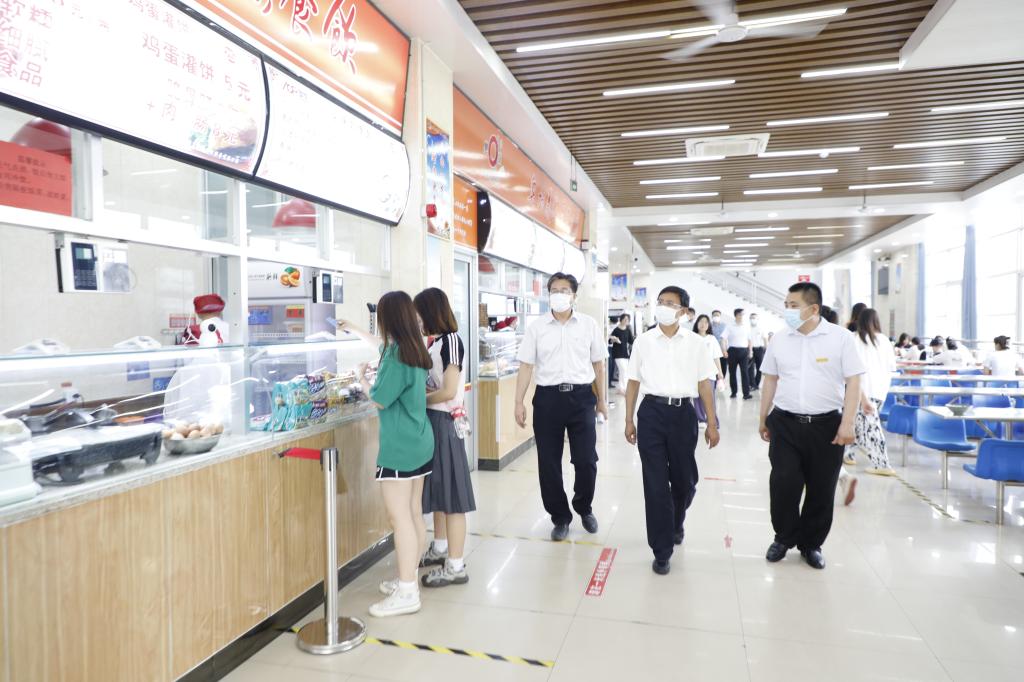 为落实全市校园安全工作视频会议精神,6月25日,学院党委书记吕尧良,党委副书记、院长王忠山深入学生餐厅、学生公寓和校园安防监控中心,实地调研检查校园安全稳定工作。党委委员、党政办公室主任、统战部部长赵庆松参加调研。