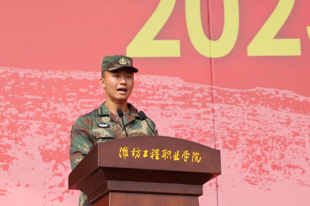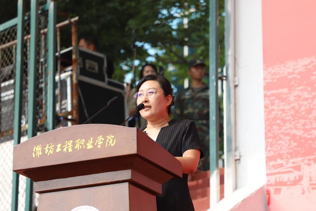 典礼上,闫辉在讲话中对军训教官提出训练要求。教师代表张丽丽、高年级学生代表张宸溪、新生代表杨晓雯分别发言。