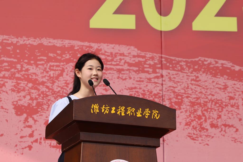 开学典礼在庄严的国歌声中拉开帷幕。典礼上,吕尧良致辞,他和新生们一起回顾了学校的发展历程,向全体2023级新同学提出三点希望,一是修身立德,在心系家国中树立远大志向,要明确个人的发展方向,筑牢理想信念根基,切实担负起技能强国的时代重任。二是脚踏实地,在勤学上进中练就高强本领,要珍惜在潍工的每一寸光阴,持续拓展学习的广度、挖掘学习的深度、夯实学习的厚度,践行校训精神,练就过硬本领。三是强健身心,在磨炼意志中砥砺坚韧品格,要养成良好的作息习惯,以强健的体魄承载未来的生活,要学会用发展的眼光、积极的思维、正面的情绪解决困难,在逆境中磨砺坚毅品格。他还要求,在军训中要服从命令、听从指挥、严格训练,以积极的精神面貌挑战自我、顽强拼搏,铸造团队精神、厚植家国情怀,在激情奋斗中绽放青春光芒。