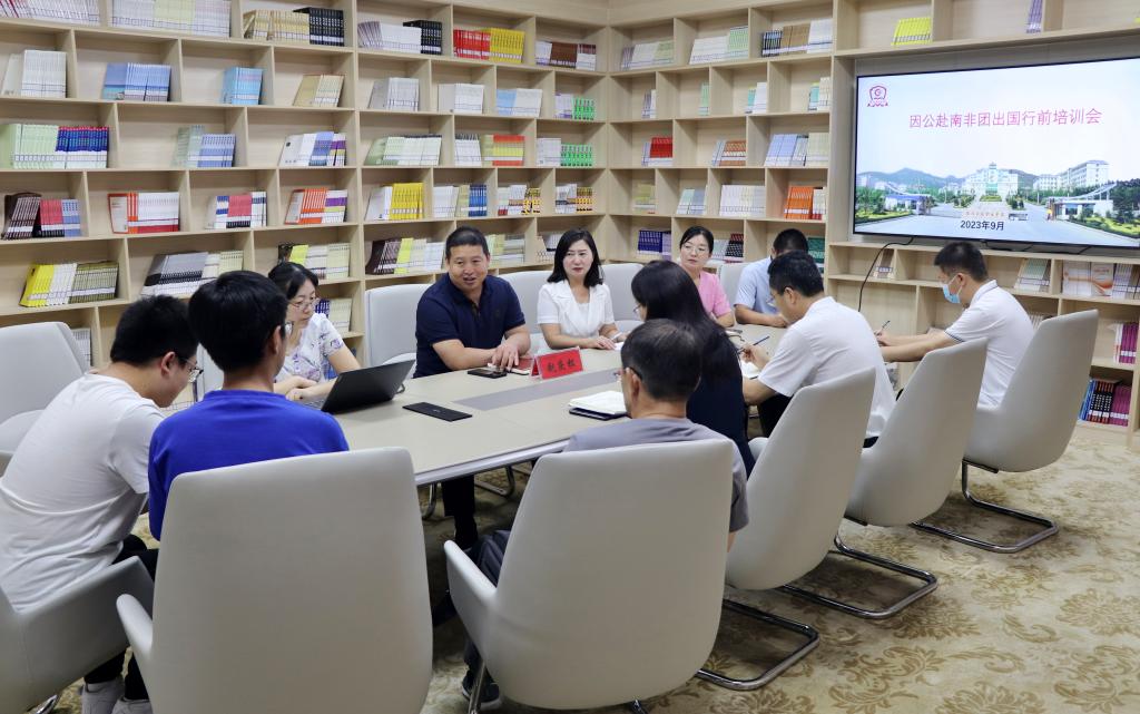 9月7日上午,因公赴南非团行前培训会在海岱阁117会议室举行。副院长赵庆松出席会议并讲话,组织人事处、纪检监察办公室、教务处、国际交流学院相关负责人及出国师生参加会议。