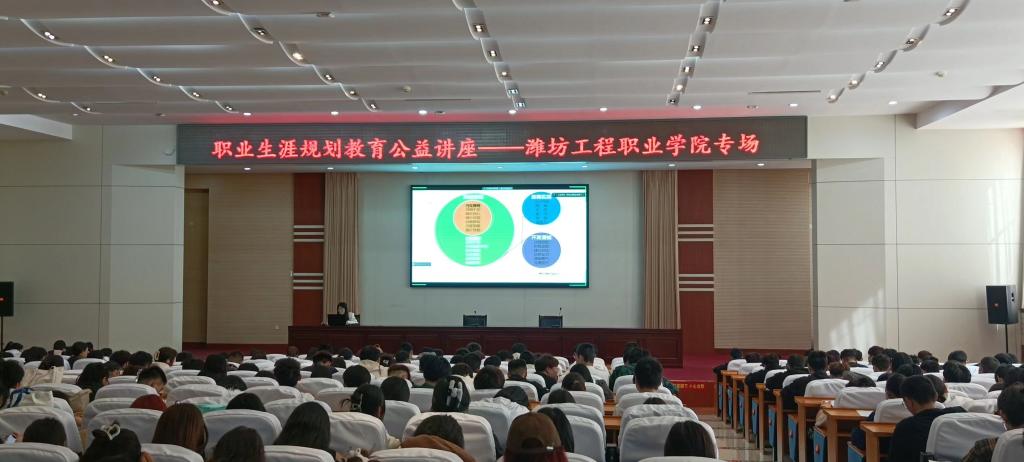 10月26日,由潍坊市人力资源和社会保障局主办,潍坊市公共就业和人才服务中心、潍坊创业大学承办的职业生涯规划教育公益讲座在我院举办,400余名师生参与现场活动,1000余名师生通过线上视频会议形式观看讲座内容。
