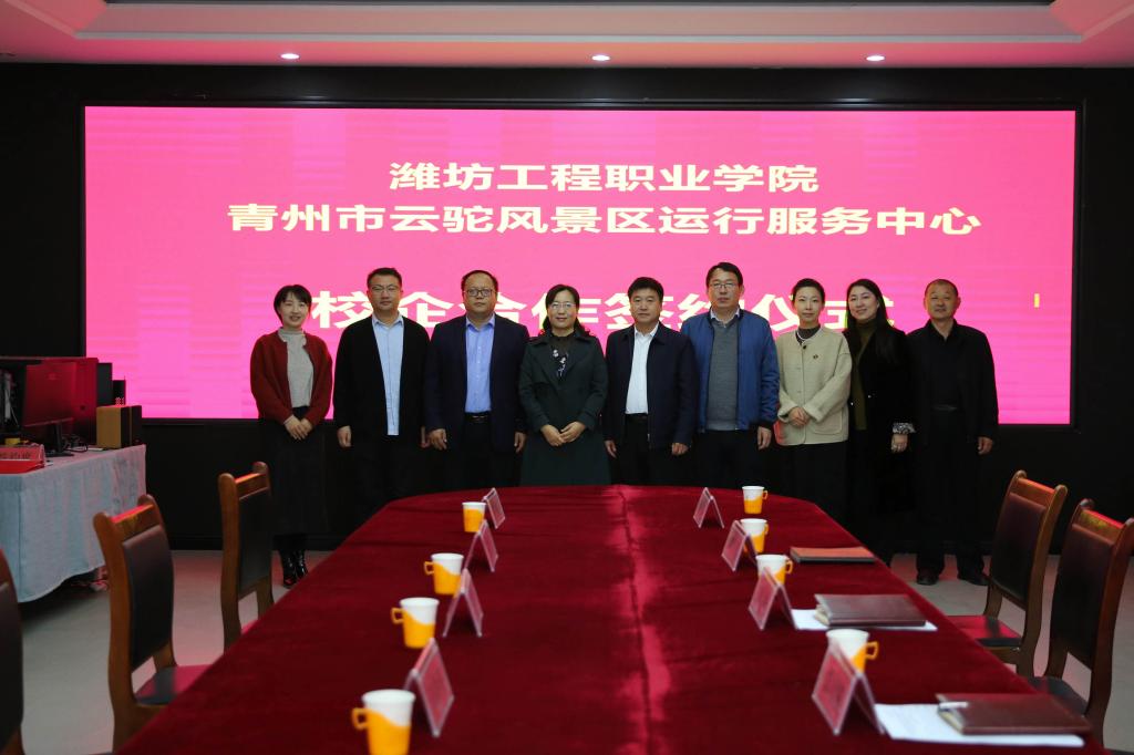 11月8日,我院与青州市云驼风景区运行服务中心校企合作签约仪式在青州市大明衡王城举行,商学院负责人参加活动。