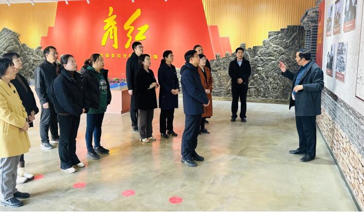 活动中,在讲解员的带领下,党员们依次参观了展馆内三个展区。一篇篇详实的记载、一张张生动的照片、一件件珍贵的文物、一个个真实的故事,生动再现了华东保育院在解放战争时期的艰辛创办历程。吕尧良等认真听取讲解,不时驻足观看展品,询问具体细节,领悟“一切为了解放战争的胜利,一切为了革命后代健康成长”的责任与担当,深刻感悟共产党人的初心使命。在展馆大厅内,全体党员面向党旗重温入党誓词,激昂铿锵的誓言表达了全体党员不忘初心、牢记使命的坚定信念和使命担当。