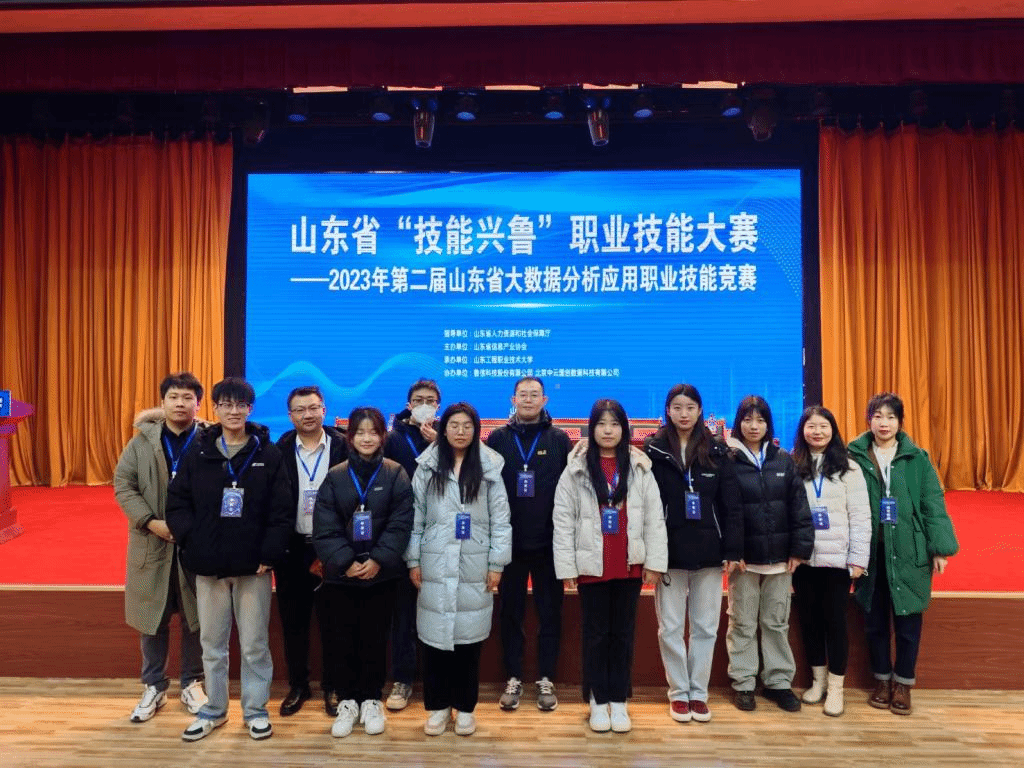 近日,山东省“技能兴鲁”职业技能大赛暨2023年第二届山东省大数据分析应用职业技能竞赛在山东工程职业技术大学举办,我院获得教师组比赛一等奖1项、二等奖1项、三等奖2项;荣获学生组团体比赛二等奖1项。