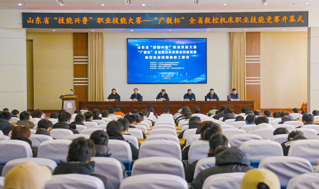 12月19至22日,山东省“技能兴鲁”职业技能大赛—“广数杯”全省数控机床职业技能竞赛数控机床装调维修工赛项在我院举办,大赛主办单位山东机床通用机械工业协会会长王桂东,裁判长、山东青州技师学院副院长赵玉玺,潍坊工程职业学院副院长赵庆松出席开幕式,赛项协办单位东方互联信息科技有限公司相关负责人,教务处及机电工程学院负责人参加活动,来自全省各地市的57名选手参加比赛。