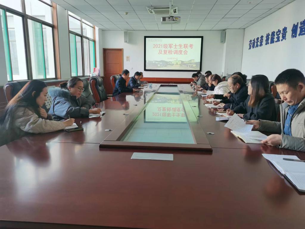 为做好2021级定向培养陆军军士入营联合考核和体格复检工作,2月16日,学院召开定向培养军士联考调度会,副院长冯永光出席会议,相关单位负责人参加会议。