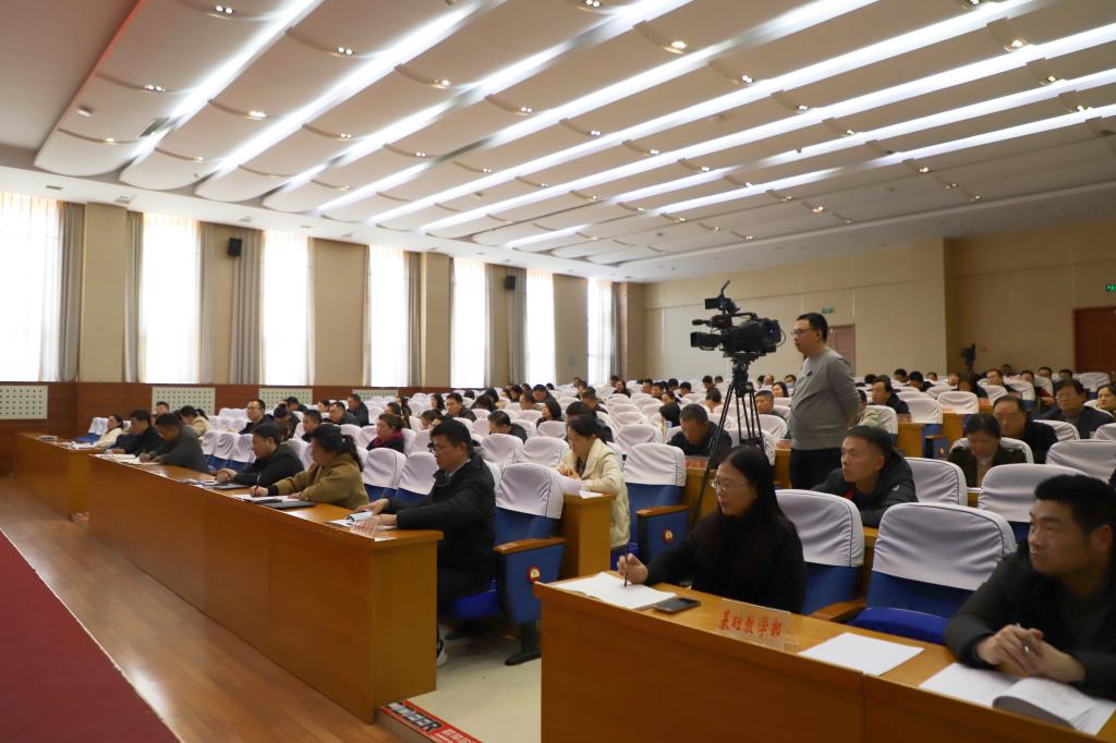 会议采取线上线下相结合的方式,全体副科级及以上干部、各二级学院教研室主任、团总支书记在主会场参会。其他教职工通过线上收听收看会议。