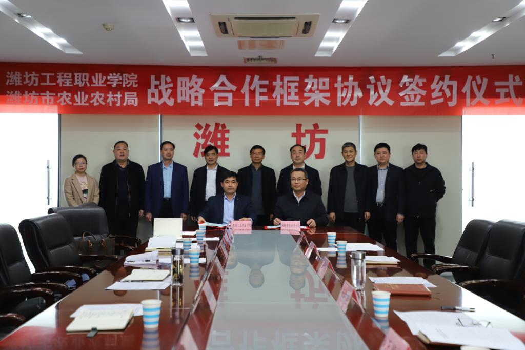 3月14日上午,学院与潍坊市农业农村局战略合作框架协议签约仪式举行。市农业农村局党组书记、局长王金来,党组成员、市乡村振兴局常务副局长云增忠,学院党委书记吕尧良,党委副书记王金明,副院长杜福杰,党委委员、党政办公室(统战部)主任(部长)高乐江出席签约仪式,学院产教融合处、继续教育学院、农林科技学院相关负责人,以及市畜牧发展中心、市农业技术推广中心等部门相关负责人,有关企业代表参加活动。会议由云增忠主持。