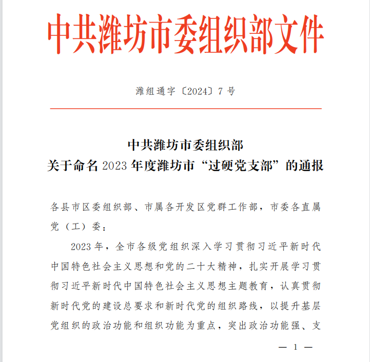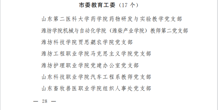 近日,中共潍坊市委组织部通报了2023年度潍坊市 “过硬党支部” 命名情况,我院马克思主义学院党支部获评2023年度潍坊市“过硬党支部”。