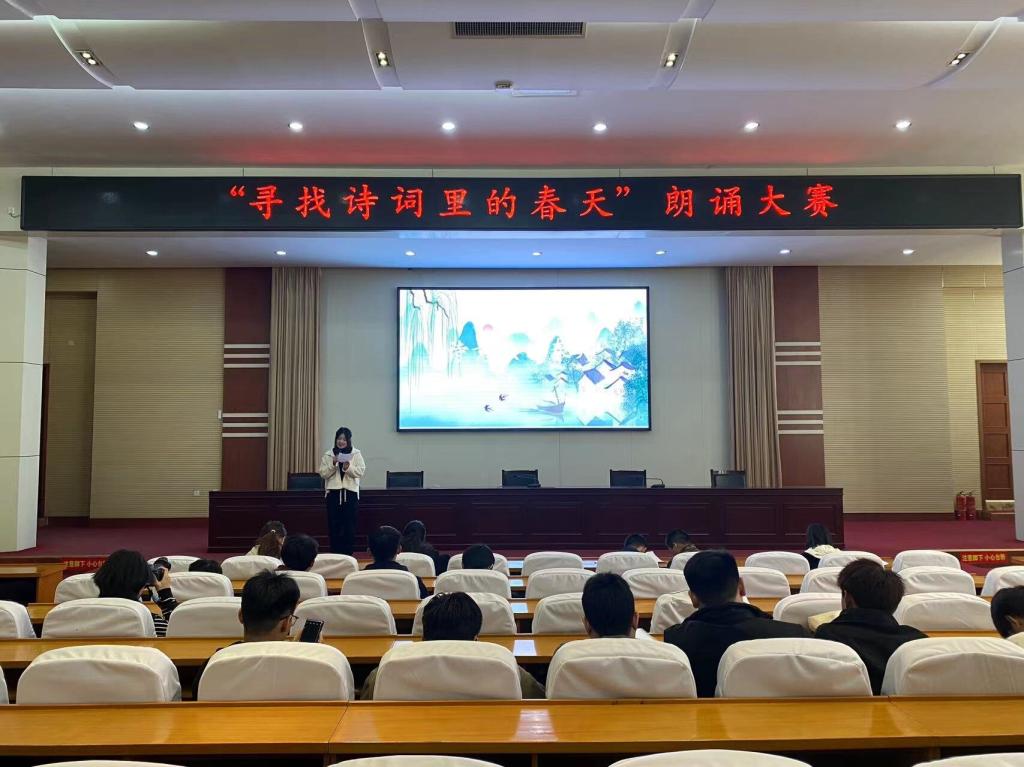 3月20日下午,由团委主办的“寻找诗词里的春天”诵读活动在海岱阁学术报告厅举行。本次诗词诵读活动以“春”为主题,让学生在吟诵古典诗词和品读经典美文中感受传统文化魅力和时代精神,达到了以诗育人、培养情操、提升文学素养、增强文化自信的目的。