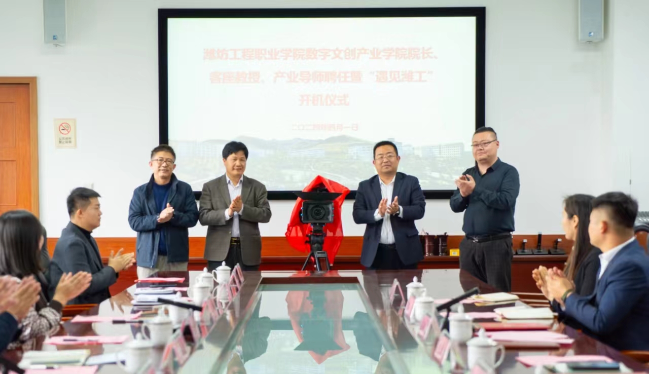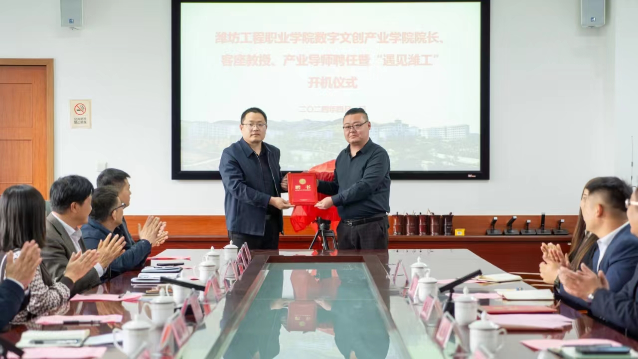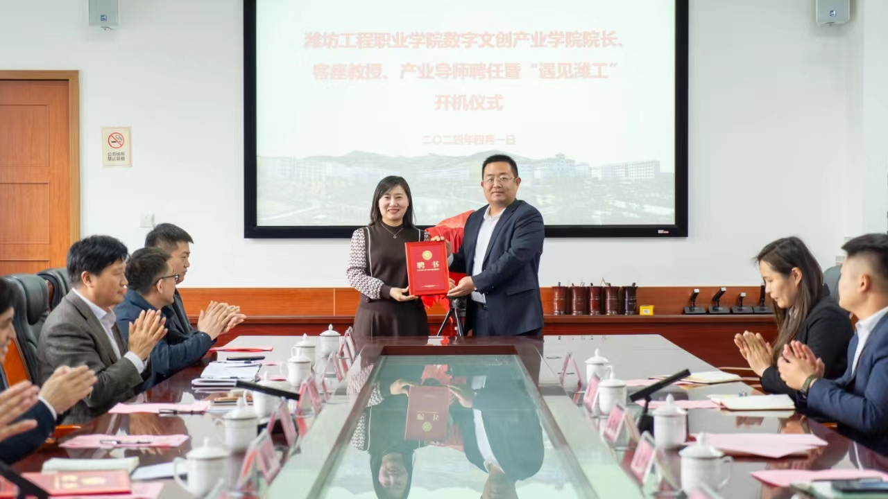 4月1日下午,学院举行数字文创产业学院院长、客座教授、产业导师聘任仪式暨“遇见潍工”宣传片开机仪式。党委副书记王金明,党委委员、组织人事处处长赵凤卿,党委委员、宣传部部长付小政,山东拓远文化集团有限公司董事长蔡向鹏、总经理李升旭出席仪式,凤凰艺术学院负责人及相关教研室负责同志参加仪式。
