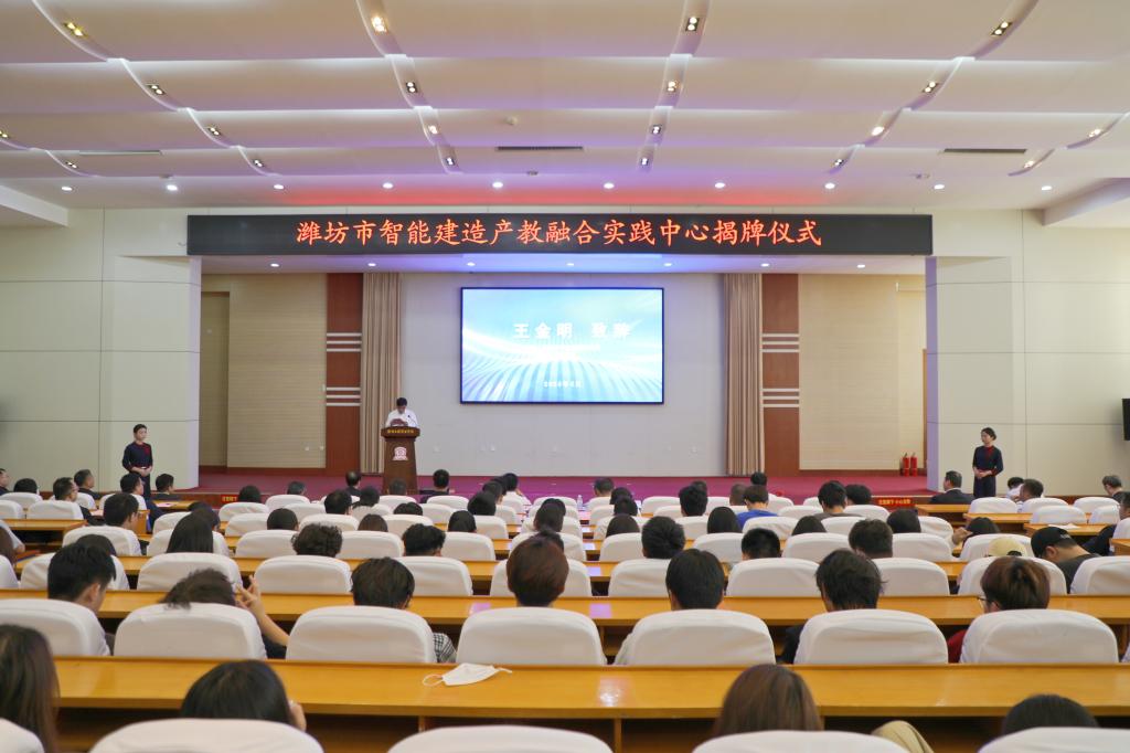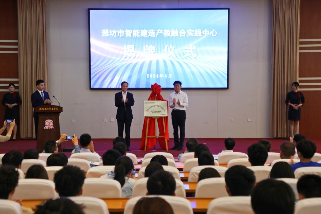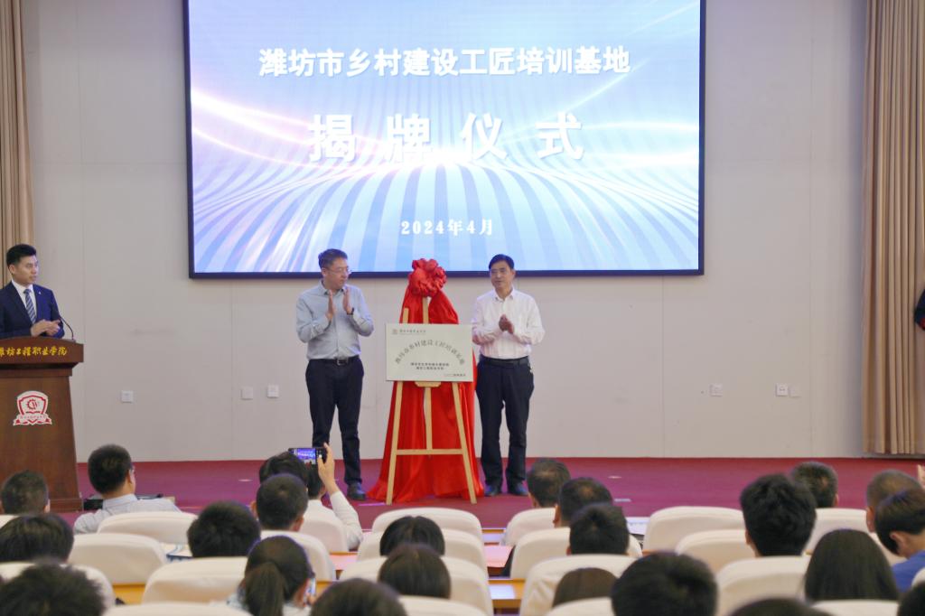 4月19日,潍坊市乡村建设工匠培训基地暨潍坊市智能建造产教融合实践中心揭牌仪式在我院举行。省住建厅村镇建设处处长李晓,潍坊市住房和城乡建设局党组书记、局长马冰,潍坊市住房和城乡建设局二级调研员张希林,青州市委常委、副市长王文成,学院党委副书记王金明,党委委员、副院长冯永光,党委委员、副院长赵庆松出席揭牌仪式,潍坊市财政局、人社局及各县市区住建部门相关负责人,建筑工程学院相关负责人及部分师生代表参加仪式。