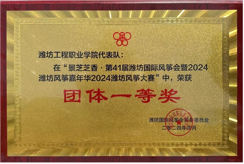 5月1日,第41届潍坊国际风筝会暨2024潍坊风筝嘉年华2024潍坊风筝大赛颁奖典礼在安丘世界风筝公园举行,千鸢竞技,筝舞蓝天,我院风筝代表队荣获最佳空中效果奖和团体一等奖。