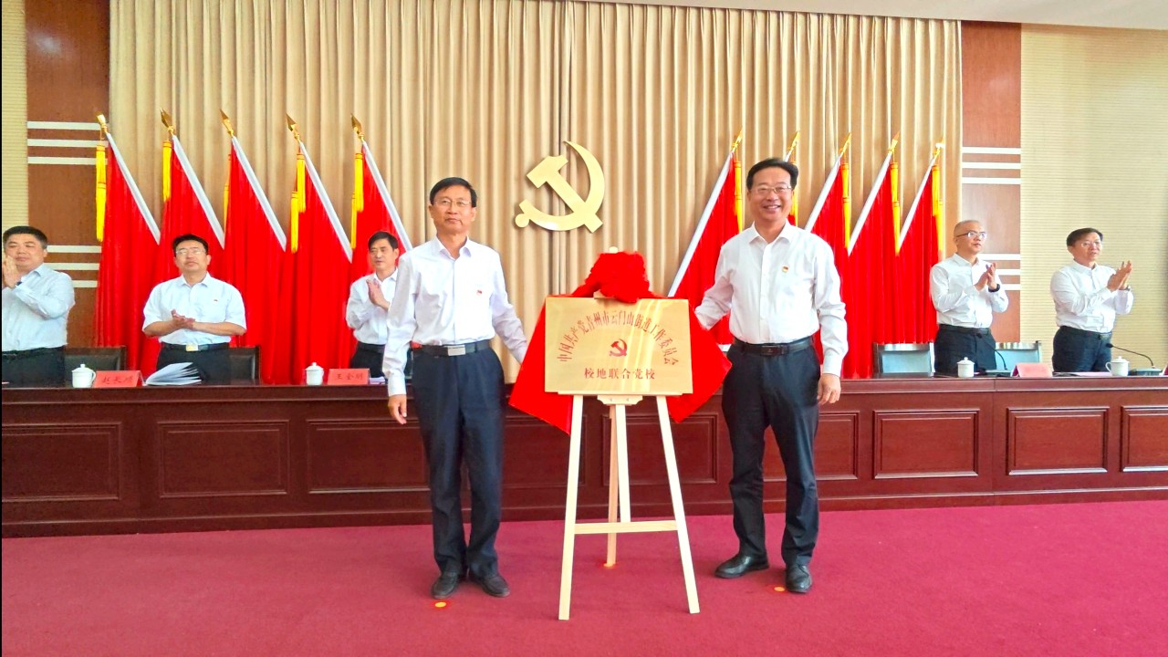 仪式上,吕尧良与蒋建新共同为校地联合党校揭牌。校地联合党校的成立标志着双方在党建引领下的深度合作正式拉开帷幕。此举不仅是校地合作的新起点,更是推动党员教育和乡村振兴战略实施的重要举措。