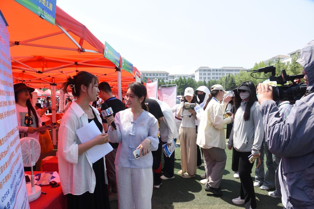 双选会现场,人头攒动,气氛热烈。毕业生手持简历,在心仪的展位前与企业负责人深入交流,积极展示自己的专业技能和实践经验;招聘人员详细介绍企业文化、岗位信息和发展前景等,并耐心答疑解惑。部分用人单位还召开宣讲会,积极推介就业岗位。据统计,此次双选会共面试2600余人,现场达成初步就业意向2200余人。山东教育电视台直播带岗,数百家优质企业积极参与,累计在线观看人数达3.5万。