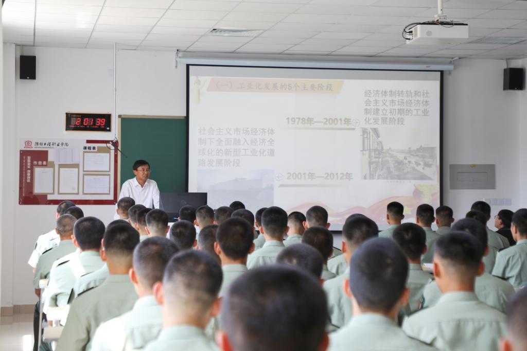 吕尧良带领学生回顾了中国工业化发展历程,从习近平总书记的谆谆教诲到国家工业发展的点点滴滴,从潍坊的地理位置、人文底蕴到潍坊工业发展的规划实践,引导学生从百年工业化发展的风雨历程以及潍坊工业发展的创新实践中汲取奋进力量,鼓励引领青年学生把青春奋斗融入党和人民事业中去,将工匠精神外化为实践行动、内化为自身素养,在新时代的征程中以实干成就梦想,在平凡中彰显不凡。