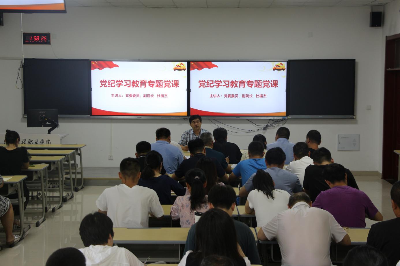 活动中,全体党员面向党旗,重温了入党誓词。随后,杜福杰围绕“学党纪、知党纪、明党纪、守党纪”四个方面为全体党员讲了一堂生动的党纪学习教育专题党课。