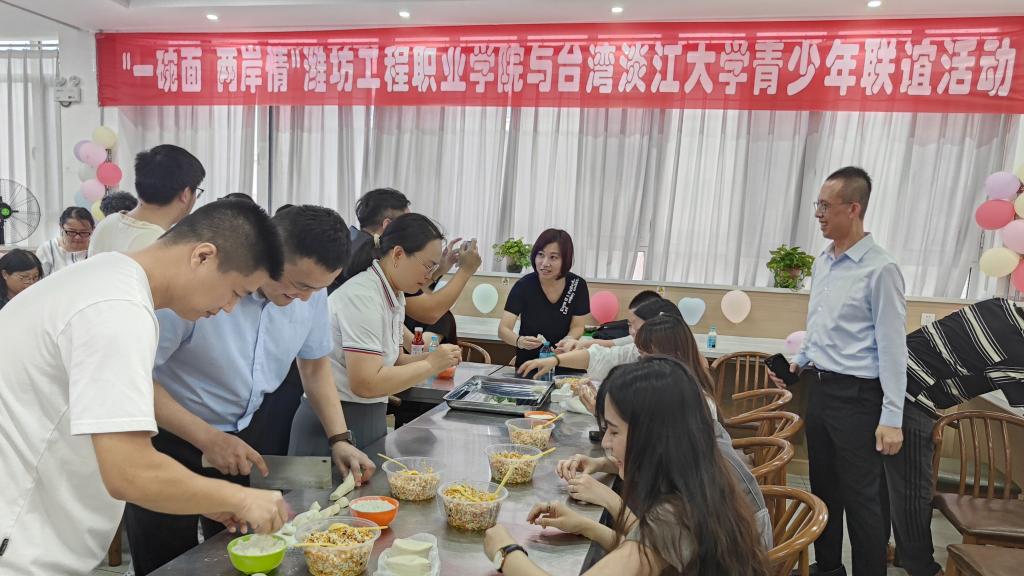 在“一碗面·两岸情”青少年联谊活动中,台湾青年与学院师生一起包水饺、吃凉面、讲述夏至凉面的故事,并共同表演了歌舞等多种节目。