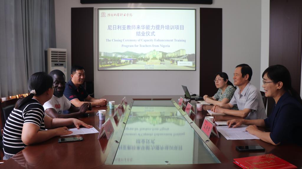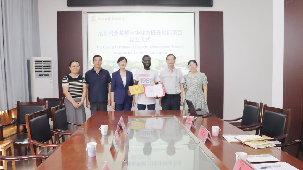 近日,尼日利亚教师来华能力提升培训项目结业仪式在崇德楼210会议室举行。党委委员、副院长冯永光出席,尼日利亚教师Kabiru Akinbiyi Akintoye,国际合作与交流学院、机电工程学院相关负责同志参加结业仪式。