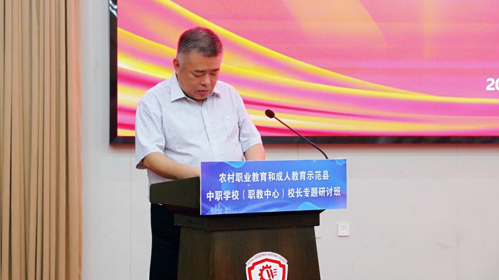 李英利在讲话中指出,此次研讨班以“职业教育助力乡村振兴”主题,旨在深入学习贯彻党的二十大和二十届三中全会精神,贯彻落实习近平总书记关于教育的重要论述、“三农”工作的重要论述和重要指示精神,帮助农村职业教育和成人教育示范县中职学校校长进一步提高政治站位,明确农村职业学校办学定位,创新人才培养模式,不断提升职业教育服务乡村振兴的能力。