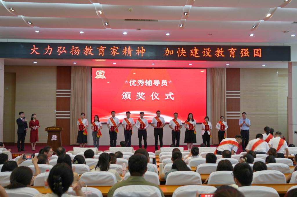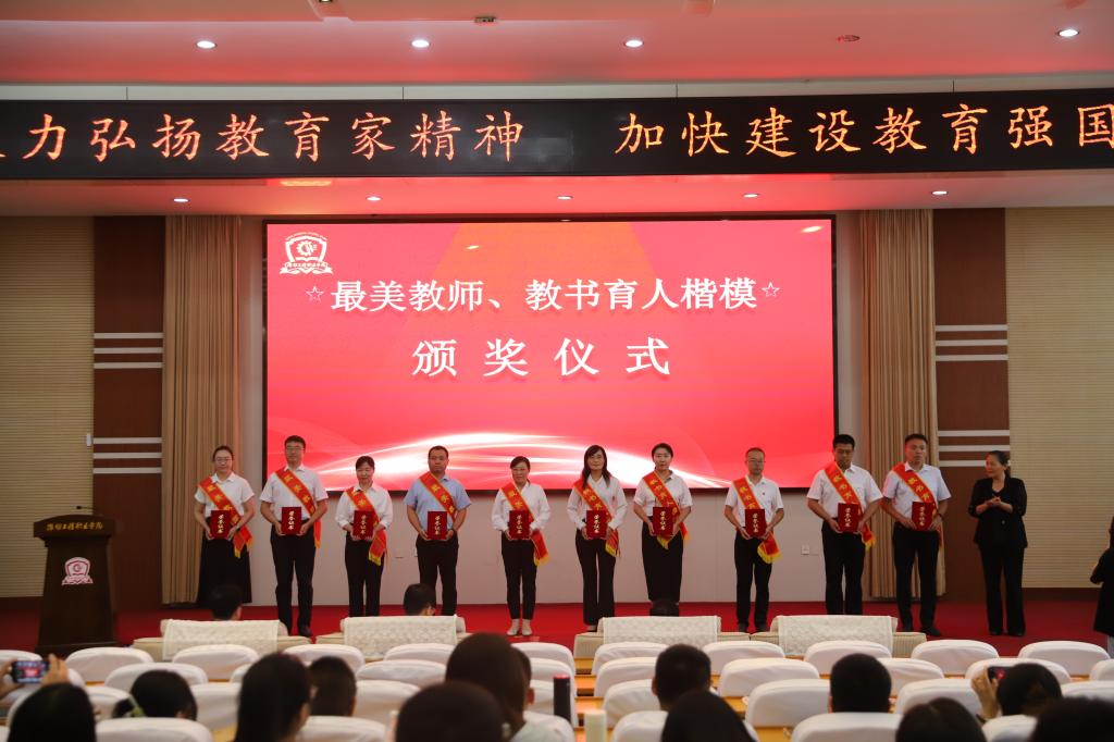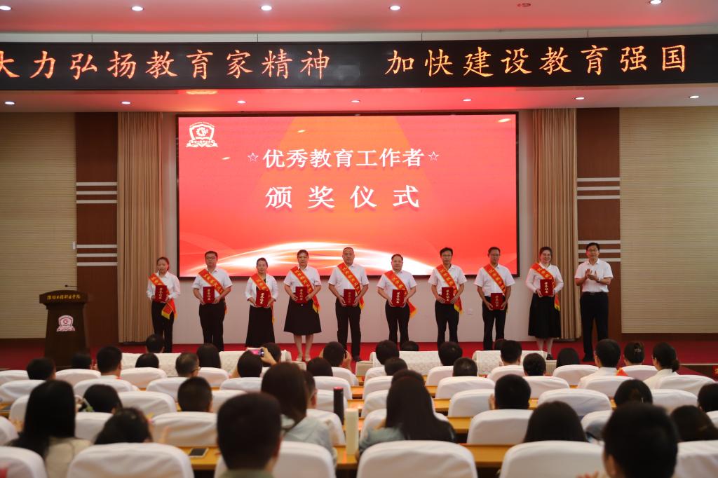 会上,冯永光宣读了《获得市级以上荣誉称号的先进集体和先进个人名单》《关于表扬最美教师、教书育人楷模、优秀教育工作者和优秀辅导员的决定》,王忠山、甄曰菊、李兴盛为获得表扬的先进个人颁奖。