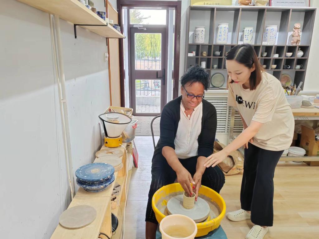会后,妮可女士看望了正在参加培训的2位塞舌尔教师,实地参观了学院建筑工程实训中心、虚拟现实产业学院、非遗产业学院和校企合作企业-亚泰花卉科技有限公司等。