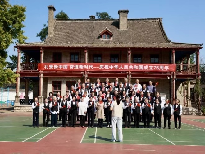 为庆祝中华人民共和国成立75周年,9月24日,学院老干部“礼赞新中国 奋进新时代——庆祝中华人民共和国成立75周年”红歌联唱活动在玲珑山校区举办。50余名老干部参加活动。