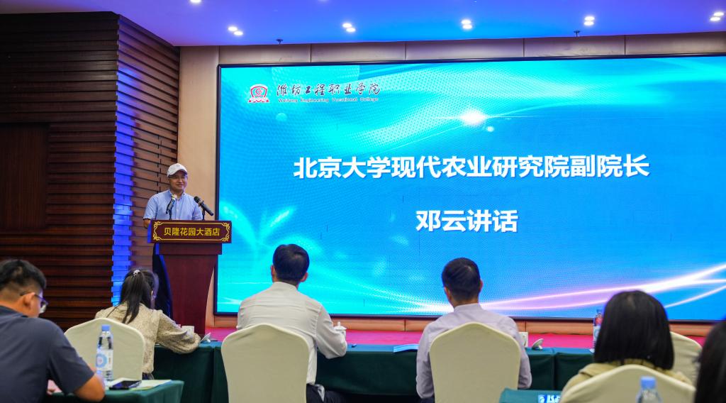 邓云在讲话中介绍了北京大学现代农业研究院的发展历程、技术团队及科研条件。他表示,青州花卉产业基础坚实,发展前景广阔,希望能借助植物再生与生物育种创新实验室的科研优势,与学院和企业紧密携手,为推动区域特色经济作物的现代化高质量发展贡献力量。