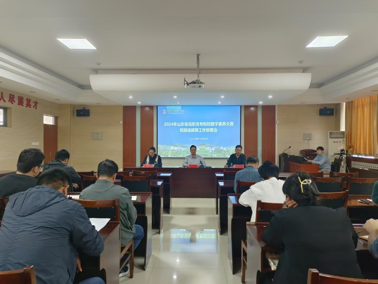 为进一步推动学院信息素养教育教学工作,提升高素质技术技能人才培养水平。10月9日,学院在海岱阁606会议室召开数字素养大赛校园选拔赛工作部署会。党委委员、党政办公室(统战部)主任(部长)、组织人事处处长、审计处处长高乐江出席会议。图书信息中心、各二级学院相关负责人及老师代表参加会议。