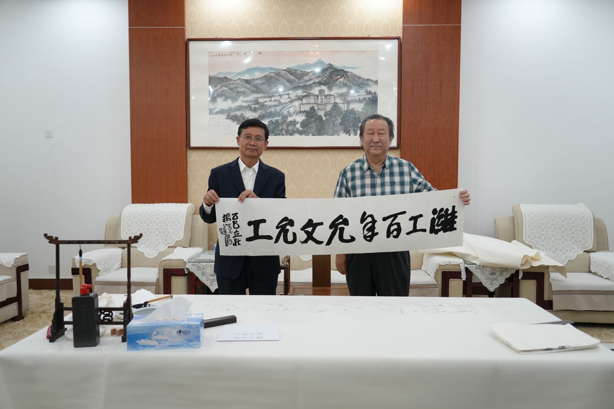 吕尧良对杨晓阳一行的到来表示欢迎,对中国文化艺术发展促进会长期以来给予学院的关心支持表示感谢。随后,他介绍了学院发展历史、专业特色、办学成果及艺术教育等情况,希望在人才培养、非遗传承、校园文化建设等方面得到更多支持帮助,努力取得更多务实成果。杨晓阳实地调研了低空经济技术应用研究院、乡村电商学院,对学院取得的办学成绩给予高度评价,并为学院校史馆题字,表示今后将进一步发挥资源优势,助力学院高质量发展。