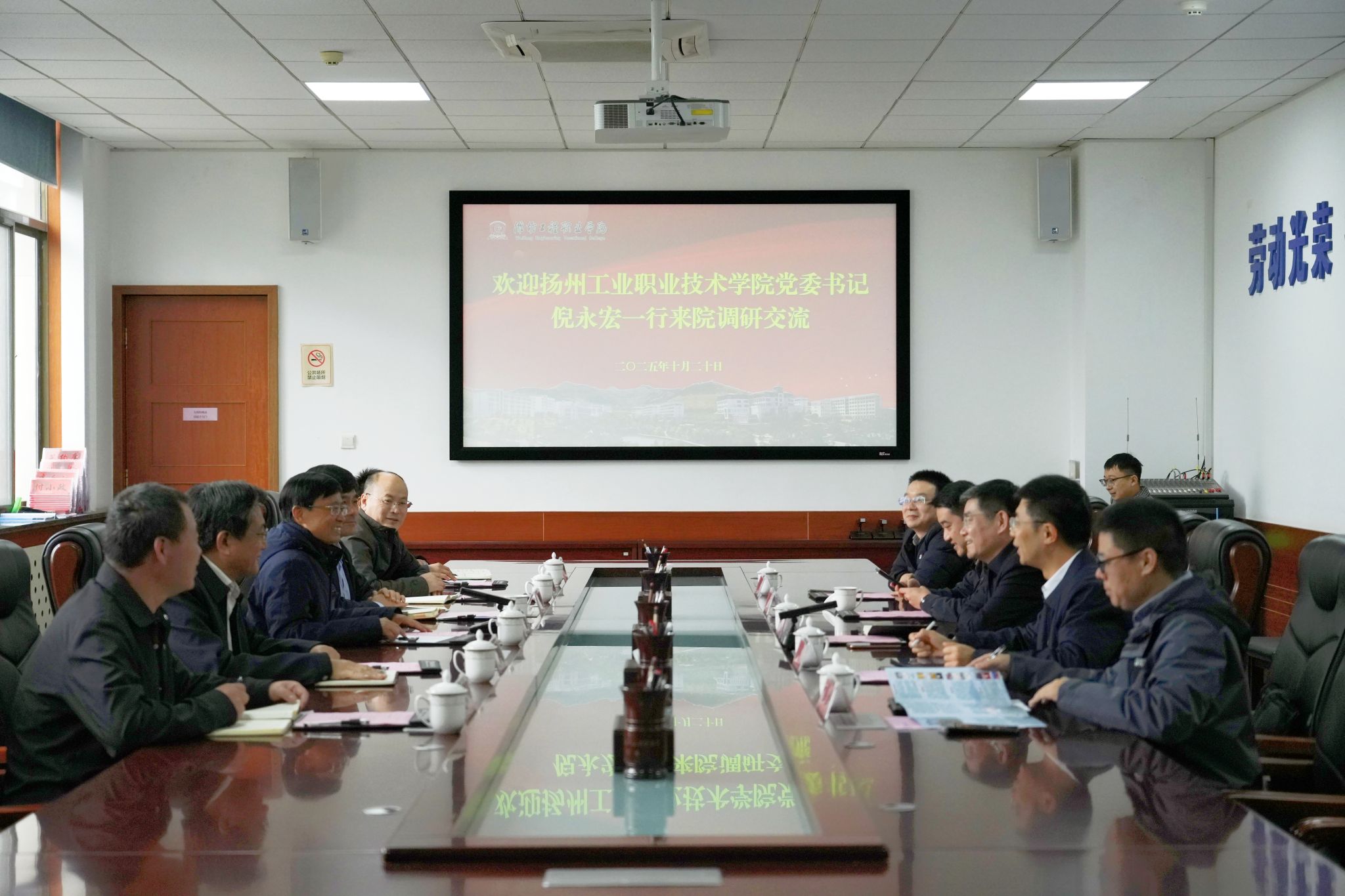 10月20日,扬州工业职业技术学院党委书记倪永宏,党委委员、副院长刘辕一行来院考察交流。党委书记吕尧良,党委副书记杜福杰,党委委员、党政办公室(统战部)主任(部长)阎保华出席活动。发展规划处、产教融合处、交通工程学院(航空工程学院)相关负责同志参加活动。