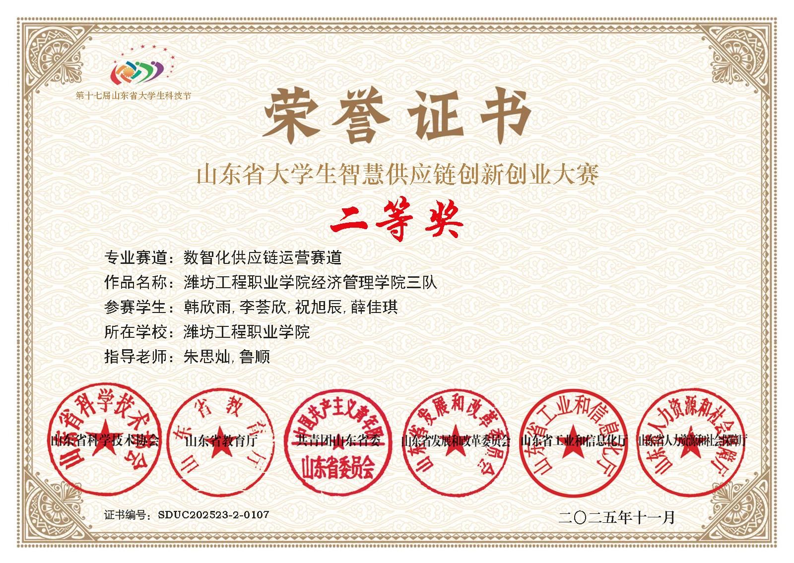 近日,第十七届山东省大学生科技节—山东省大学生智慧供应链创新创业大赛圆满落幕。我院代表队斩获二等奖1项、三等奖5项。