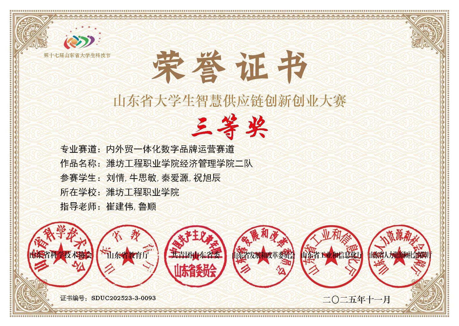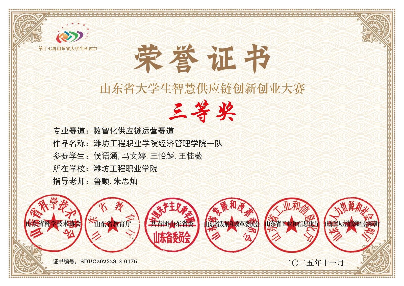 本次大赛由山东省科学技术协会、山东省教育厅等联合主办,聚焦智慧供应链领域的前沿趋势,设置“内外贸一体化数字品牌运营”与“数智化供应链运营”两大核心赛道,吸引了全省数千名学子参与。我校参赛团队紧扣“数字赋能、融合创新”主题,通过模拟真实商业场景,运用大数据分析、人工智能算法、区块链等技术手段,构建了覆盖供应链全链条的数字化解决方案,充分展现了其在智慧供应链领域的创新潜力与专业素养。