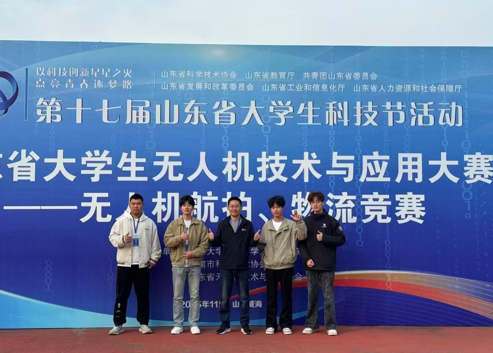近日,山东省大学生无人机技术与应用大赛——无人机航拍、物流竞赛在山东大学威海校区举行。我院张鲁星、谢宗华、杜鑫老师指导的无人机应用技术专业学生凭借出色表现,获一等奖1项、二等奖5项、三等奖1项,展现出扎实的专业素养与突出的综合能力。