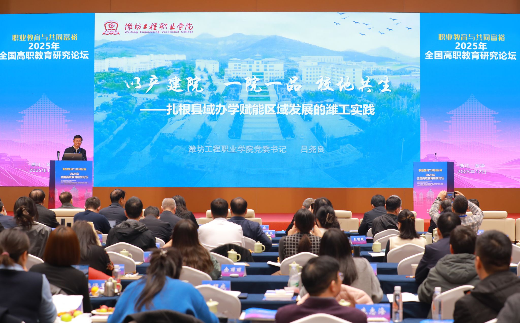 12月6日至8日,由浙江省现代职业教育研究中心、北京师范大学国家职业教育研究院主办,金华职业技术大学、浙江省教育科学研究院联合承办的“2025全国高职教育研究论坛”在浙江金华成功举办。教育部职业教育发展中心副主任黄辉,教育部教育质量评估中心职业教育评估处处长郭栋,浙江省教育厅职成教处处长陈达等领导莅临现场指导。来自高校、科研院所和学术期刊的330余人出席论坛。学院党委书记吕尧良受邀参会并作报告。党委委员、副院长赵凤卿,产教融合处、经济管理学院、教师教育学院有关负责人参加论坛。