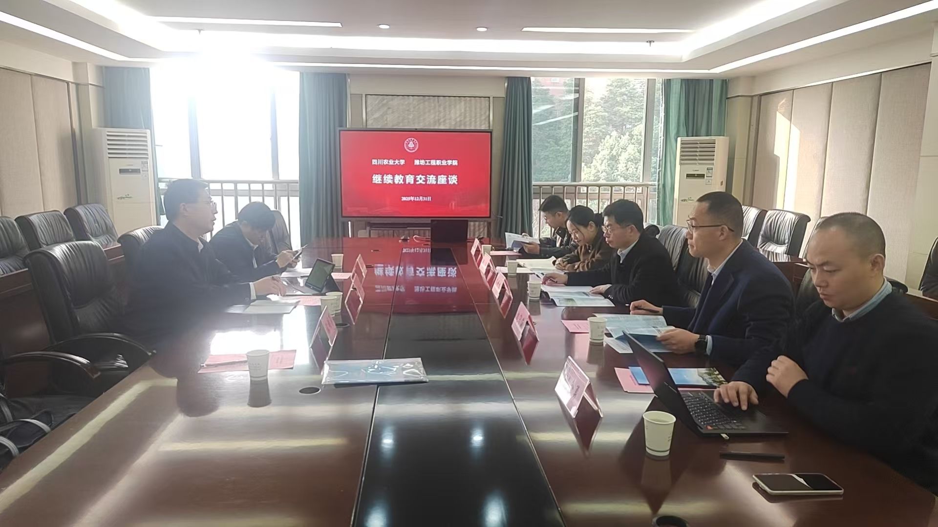 在毕节工业职业技术学院,王忠山一行实地参观了比亚迪产业学院、矿业学院、机电工程系实训中心,召开座谈会,围绕党建联建、师资共培、人才培养、专业建设、社会培训等事宜,进行了深入交流探讨,并签订了两校战略合作框架协议。期间,教师张炜为毕节工业职业技术学院骨干教师作《对标产业需求,高职院校专业群高质量发展的实践探索》报告。在四川农业大学,王忠山一行与四川农业大学继续教育学院有关负责人进行座谈,围绕乡村振兴、高素质农民培训、学历继续教育等事宜进行深入交流,达成合作意向。
