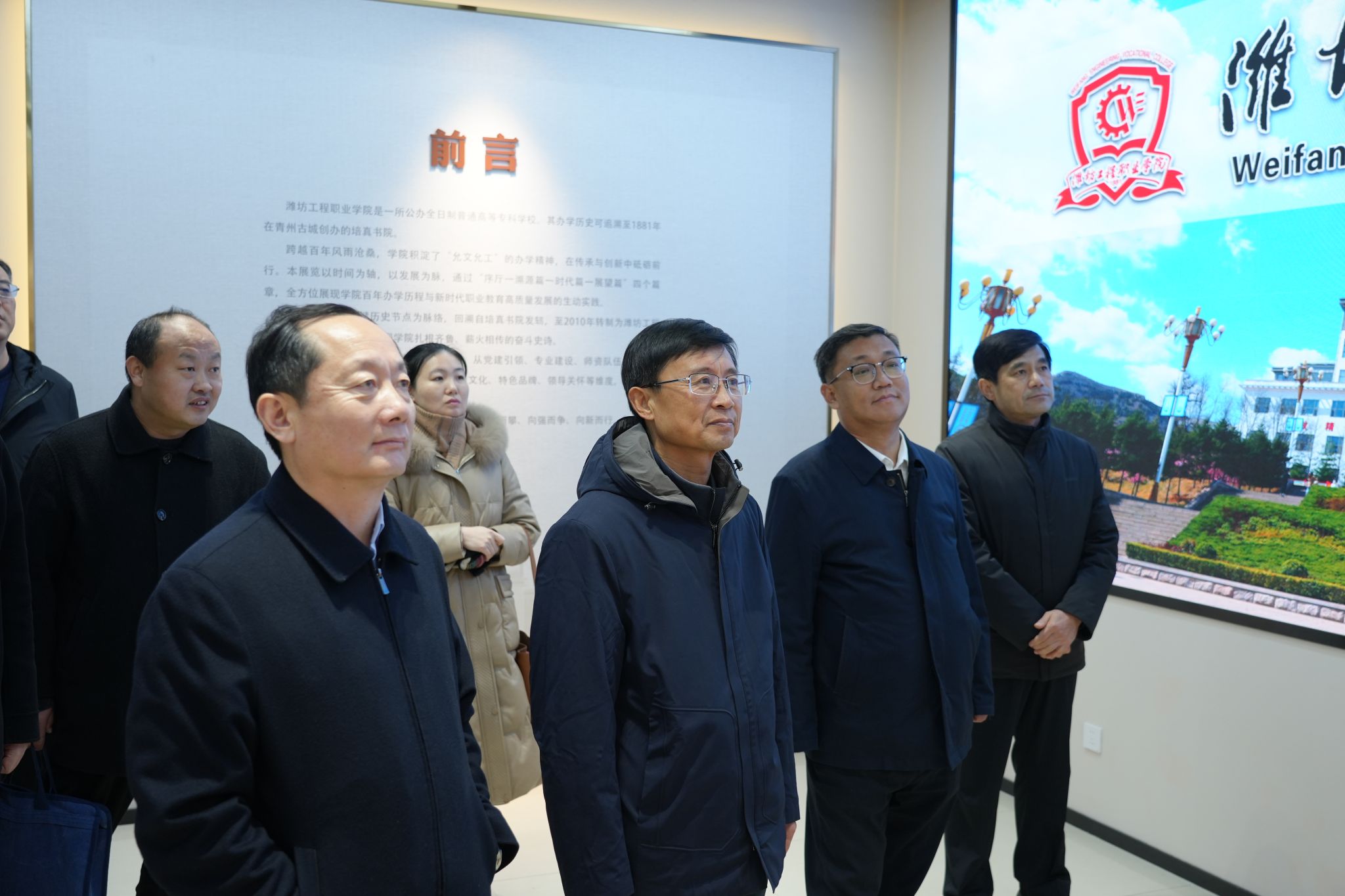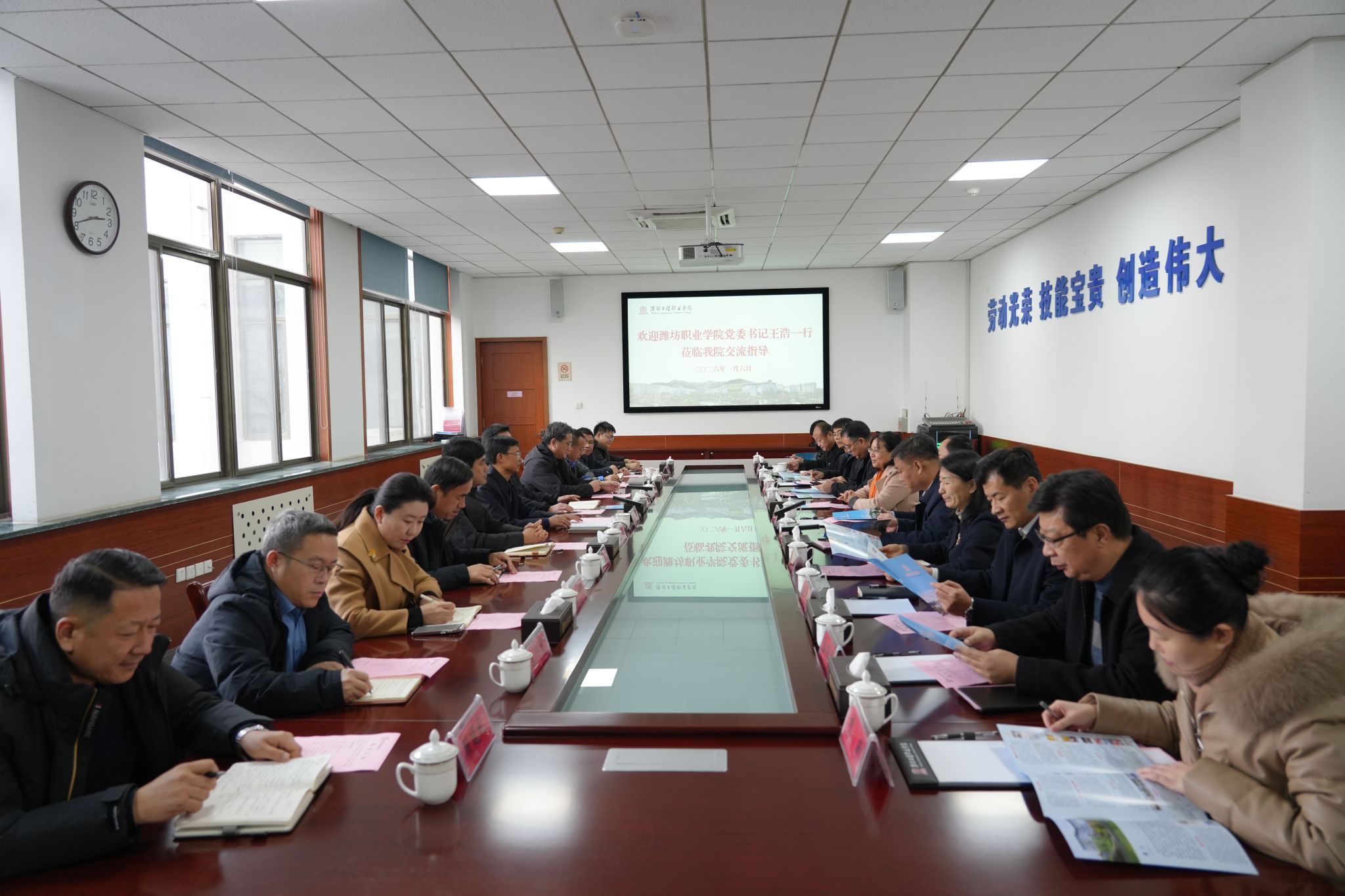 1月6日,潍坊职业学院党委书记王浩,党委副书记、院长韩瑞东一行11人来院考察交流。学院党委书记吕尧良,党委副书记、院长王忠山,院领导杜福杰、阎保华出席活动,科技处、招生就业处、产教融合处、凤凰艺术学院、机电工程学院、信息工程学院、农林科技学院相关负责人参加。