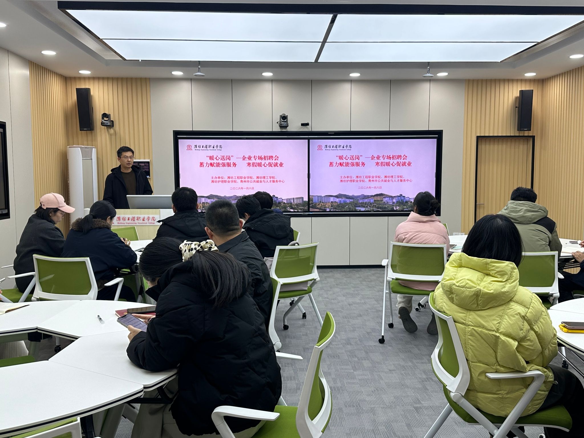 1月8日,“暖心送岗”企业专场宣讲会在我院大学生就业创业赋能中心举办。本次活动由我院联合潍坊理工学院、潍坊护理职业学院及青州市公共就业和人才服务中心共同组织,旨在为毕业生搭建精准就业对接平台,500余名学生通过观看线上直播方式参与。