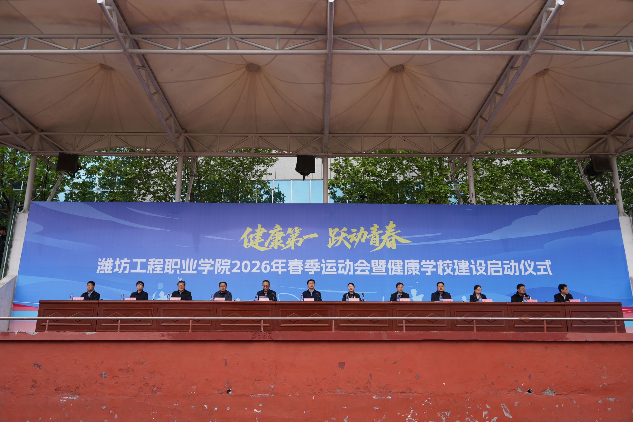 开幕式上,国旗、校旗、彩旗等方队依次入场。各方队创意十足、亮点纷呈,展现出潍工学子朝气蓬勃、奋勇争先的青春风采。教职工方阵的八段锦表演,将中华传统文化与现代体育元素巧妙结合,充分彰显校园人文底蕴与多元活力。王忠山宣布2026年春季运动会开幕、健康学校建设正式启动。党委委员、副院长、体育运动委员会副主任赵凤卿致开幕辞。裁判员、运动员代表分别宣誓。