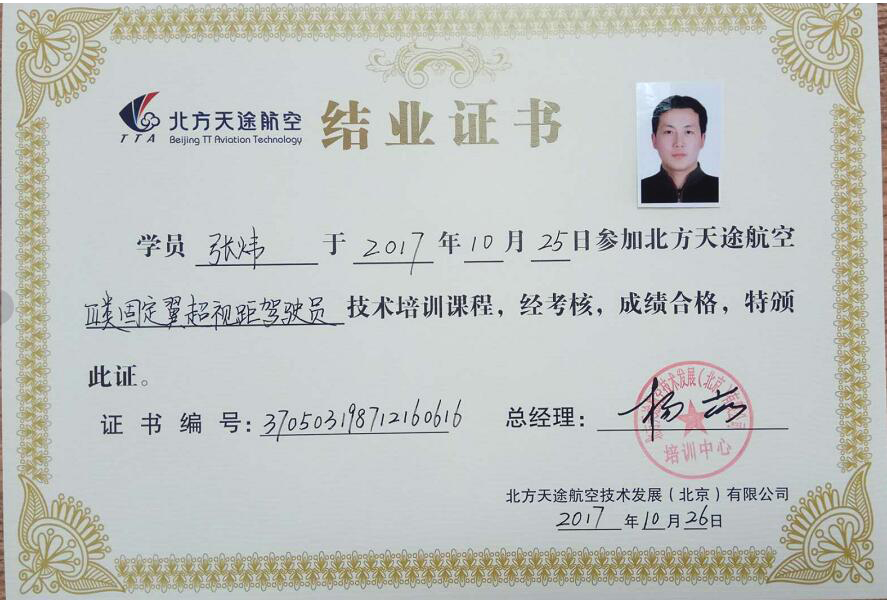 9月21日-10月28日,山工机电工程学院张炜和谢宗华两位教师,在北方天途航空技术发展(北京)有限公司,参加了第35期无人机超视距驾驶员(机长)培训,并顺利通过了各项考核。两位老师在无任何飞行操控经历的基础上,进行了一个月的高强度学习和训练。通过每天白天8小时外场飞行和晚上6小时的理论学习,练就了扎实的无人机操控技术,并学习了相关的空气动力学、飞机原理、飞行技术、气象学、空中交通管制、无人机组装、无人机维护等理论知识。