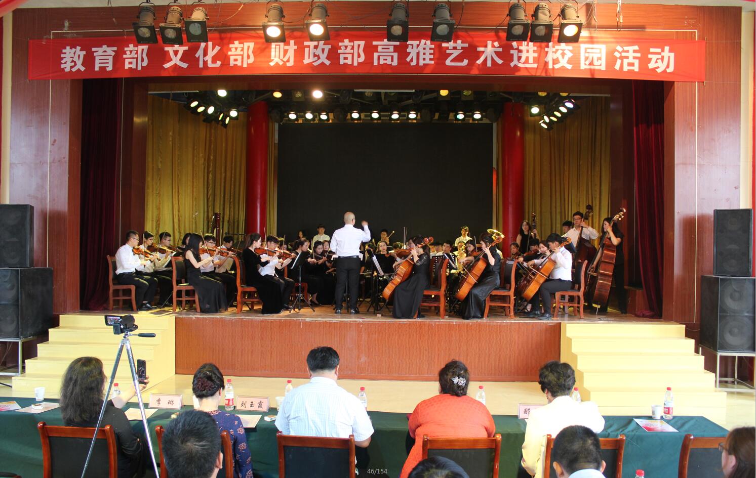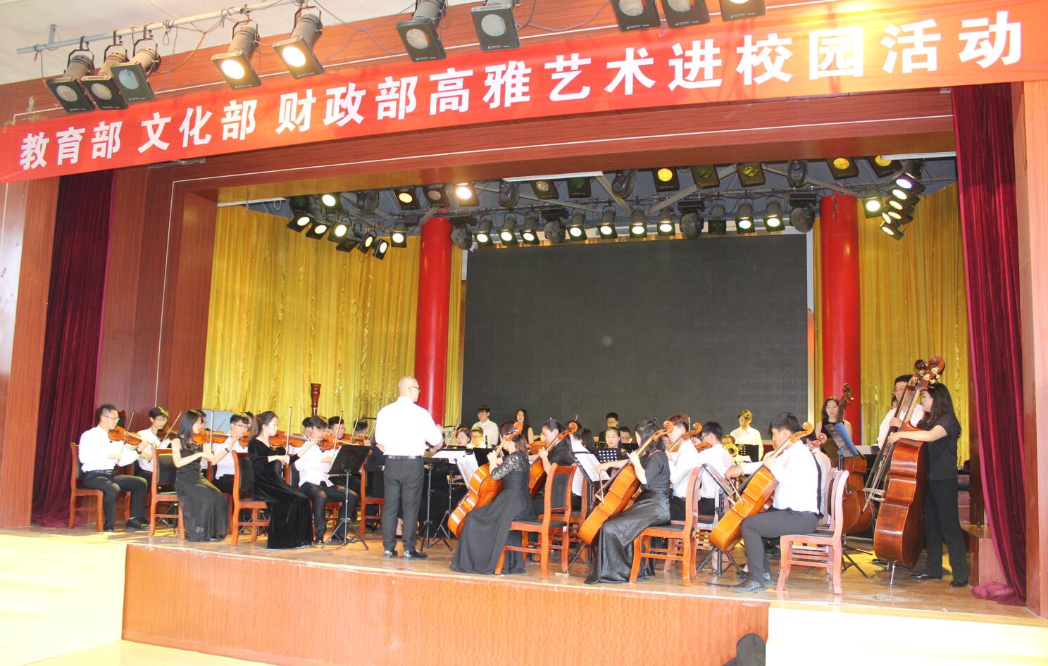 中国海洋大学交响乐团作为驻鲁高校代表团队于2012年被教育部正式列入“高雅艺术进校园”系列活动秩序册,作为驻鲁高校中唯一的一支全编制学生交响乐团多次承担演出任务。“高雅艺术进校园活动”作为向高校学生普及和传承优秀传统文化的重要平台,为丰富我院校园文化生活和提升艺术育人效果发挥了重要作用。近年来,我院高度重视内涵式发展,深入推进校园文化建设,弘扬社会主义核心价值观和中华优秀传统文化,保护和传承非物质文化遗产,成功举办了“回首那份爱”主题感恩教育活动、“高雅艺术进校园--国家京剧专场”、庆祝建党95周年、纪念红军长征胜利80周年、潍坊艺术剧院--戏曲进校园活动等系列主题活动和非物质文化遗产展演系列活动,丰富了学生的校园文化生活,营造了高雅的校园文化氛围,深受师生喜爱,收到了良好的效果。