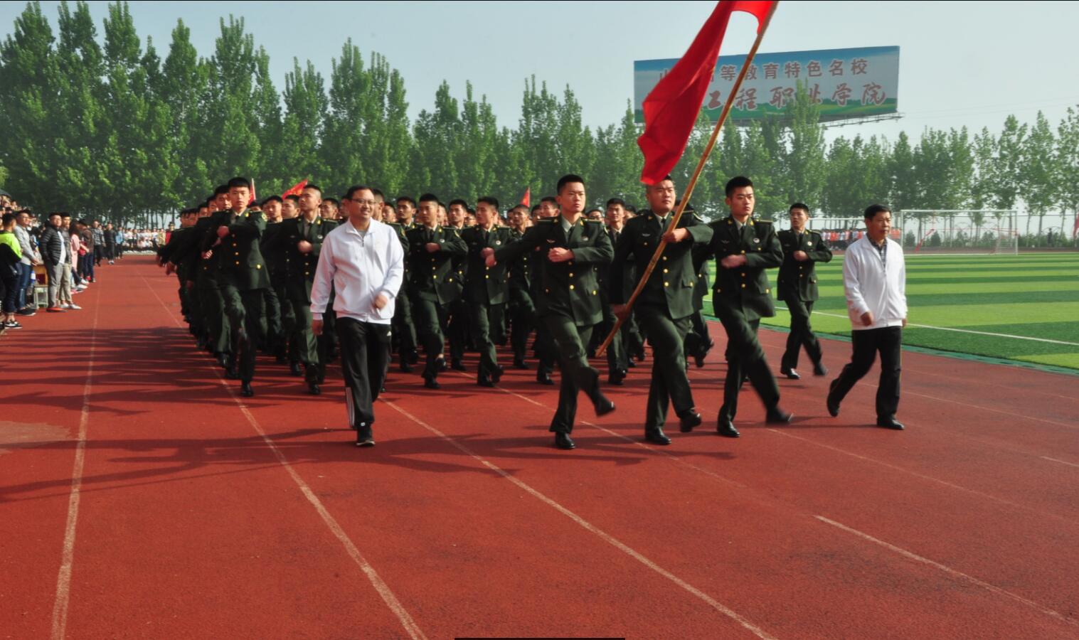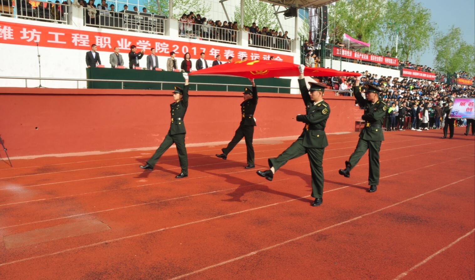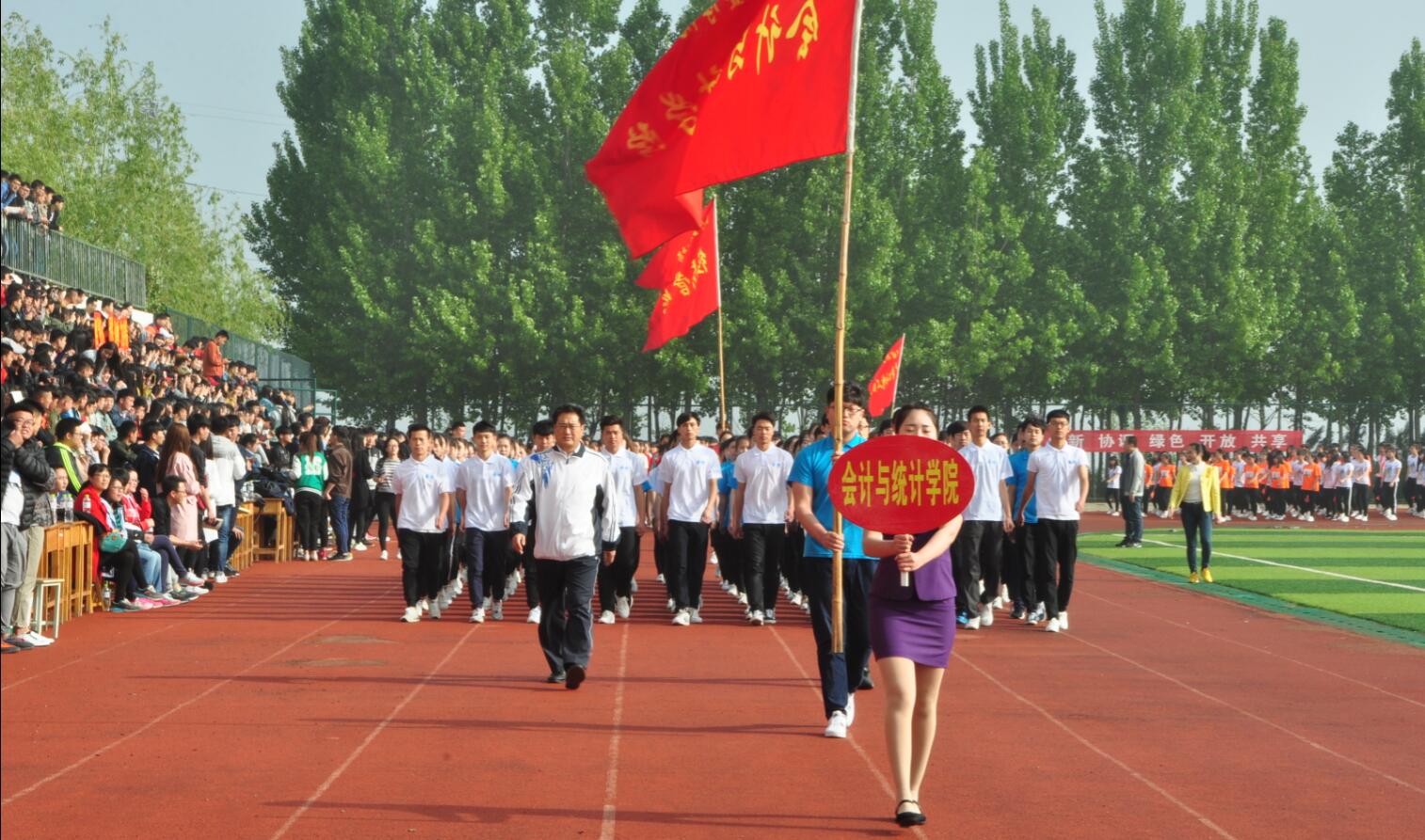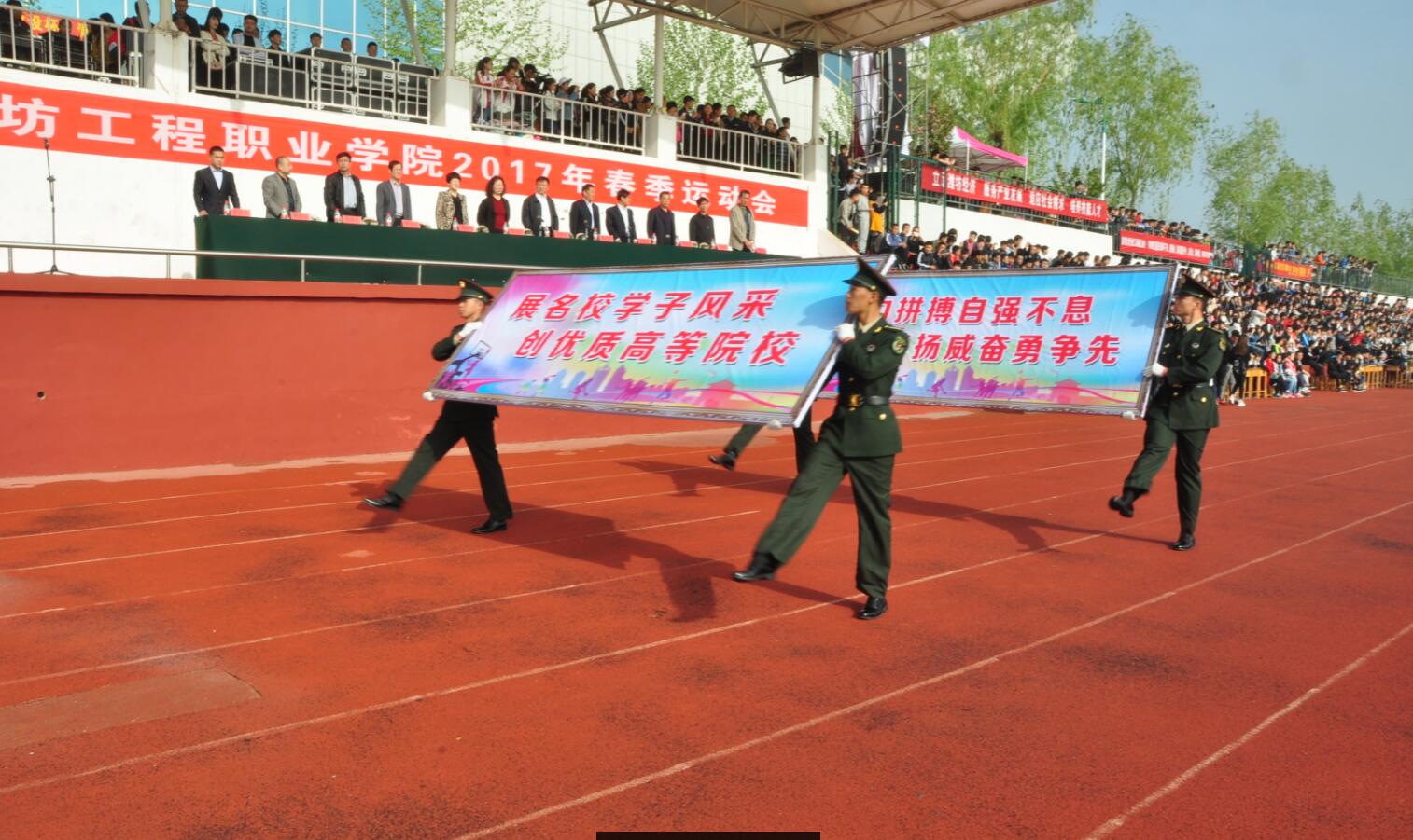 阳光明媚,彩旗飘飘。4月20日,学院2017年春季田径运动会在学院体育场开幕。学院党委书记肖明胜,院长高立伯,院领导李琳、王金明、那菊华、韩振华及相关部门负责同志出席开幕式。