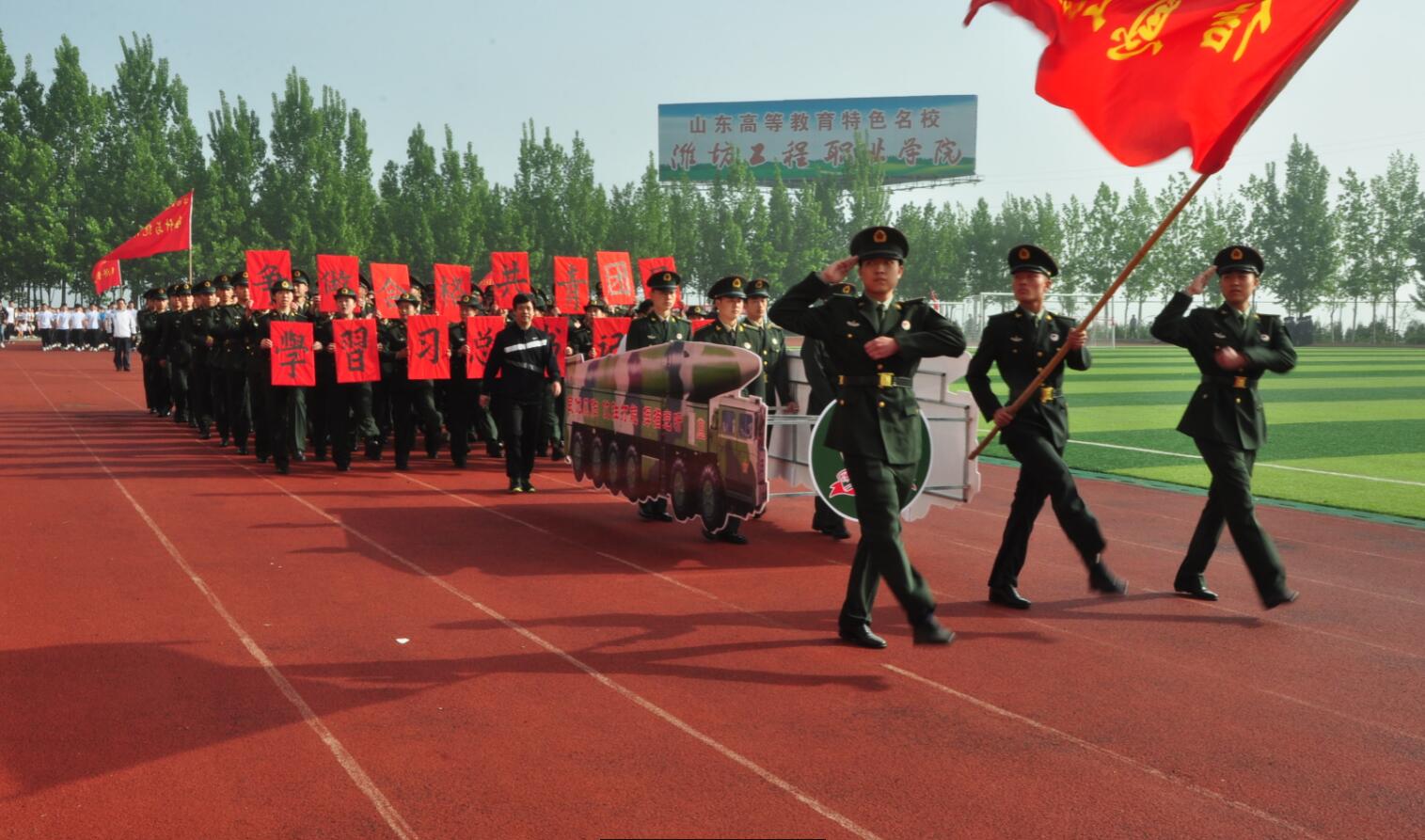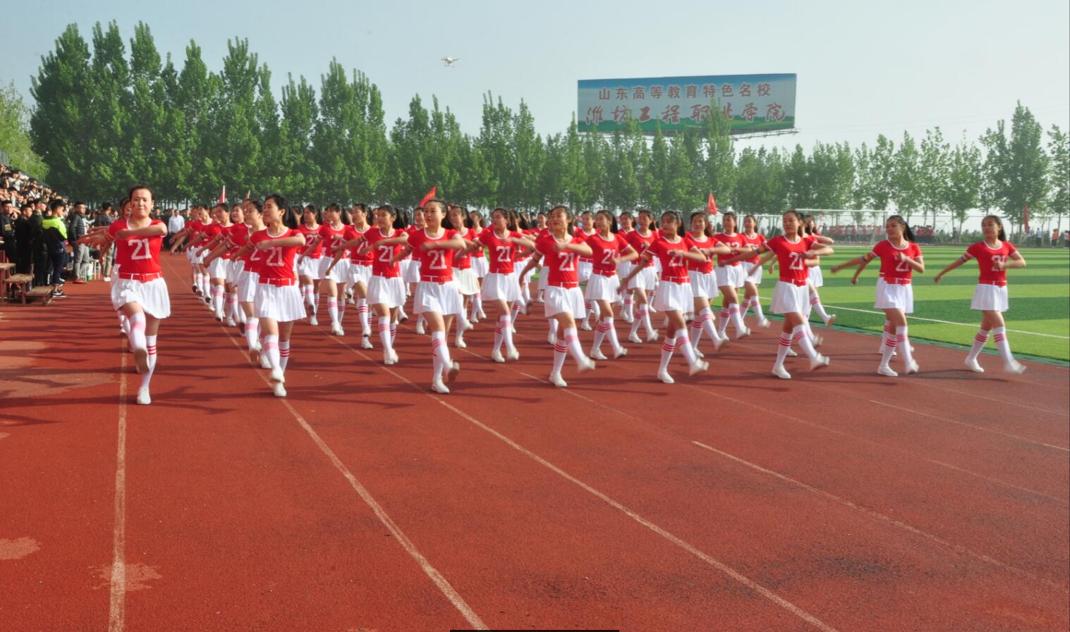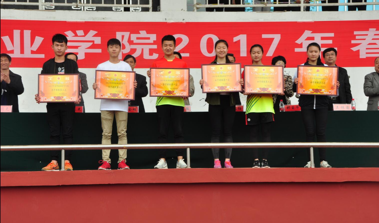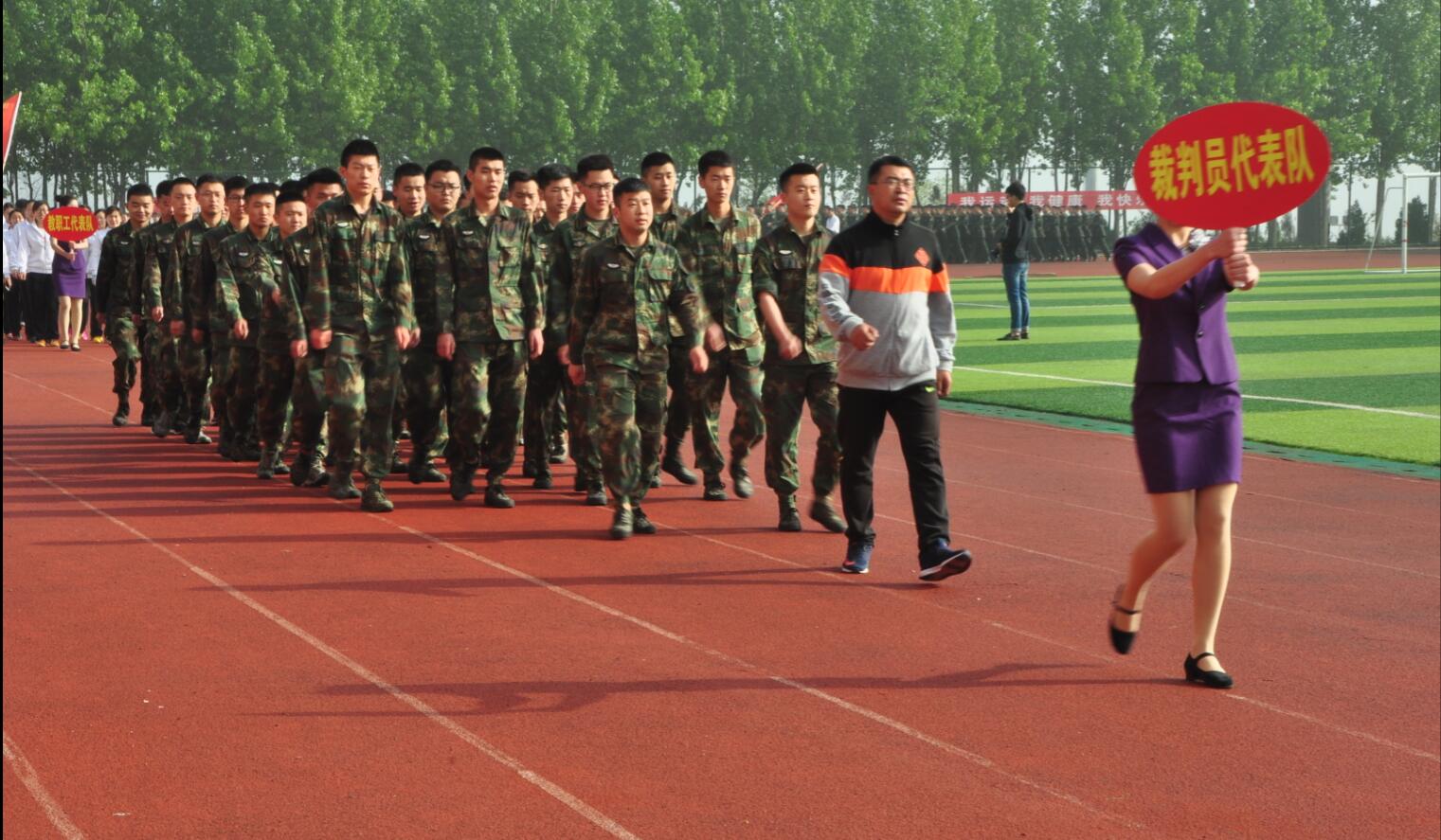 阳光明媚,彩旗飘飘。4月20日,学院2017年春季田径运动会在学院体育场开幕。学院党委书记肖明胜,院长高立伯,院领导李琳、王金明、那菊华、韩振华及相关部门负责同志出席开幕式。