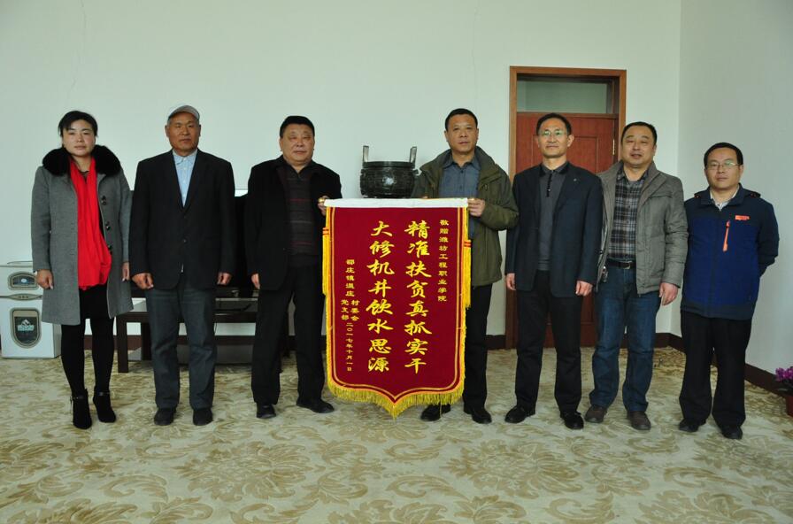 11月21日,我院帮包村青州市邵庄镇温庄村两委成员代表全村850余名村民,满怀感激之情来到我院,送来“精准扶贫真抓实干,大修机井饮水思源”的锦旗和感谢信。