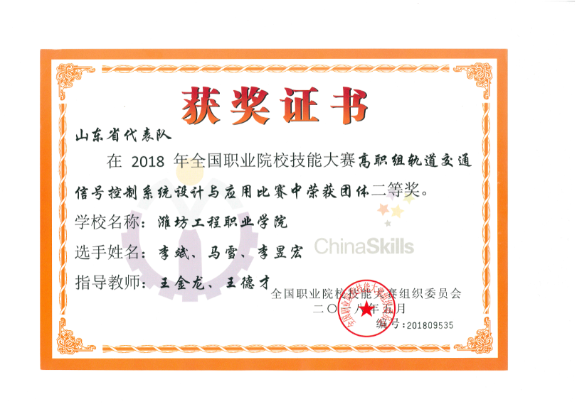 5月27日,由教育部、发改委等35个部委主办的2018年全国职业院校技能大赛高职组“轨道交通信号控制系统设计与应用”赛项在吉林铁道职业技术学院举行。本次比赛共有来自全国24个省、市、自治区71所院校的213名选手参加。我院信息工程系安庆森主任领队,王金龙、王德才老师指导,李斌、马雪、李昱宏等三名学生组成的团队积极备战,沉着应战,最终斩获大赛二等奖第一名的优异成绩。来自俄罗斯、韩国、肯尼亚、伊朗四个国家的60名学生到现场观摩和体验比赛。