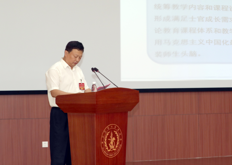 我院作为定向培养士官地方院校,坚持把推进习近平新时代中国特色社会主义思想“系统进教材、生动进课堂、扎实进头脑”作为最关键、最重要、最紧迫的政治任务来抓,在“进”上下功夫、在“入”上求实效,构建起了体系化设计、工程化推进、常态化延伸的大教育格局。下一步,我们将以党的十九大精神为指引,认真落实中央军委机关关于“三进入”工作的部署要求,学习借鉴兄弟院校的好经验、好做法,树立一流目标、勇于探索创新,坚持不懈用习近平新时代中国特色社会主义思想铸魂育人,打牢士官生高举旗帜、听党指挥的思想理论根基,努力培养造就能够担当强军重任的优秀军事人才,以实际行动为实现中国梦强军梦做出新的更大贡献。
