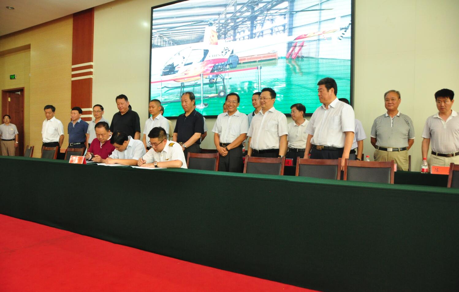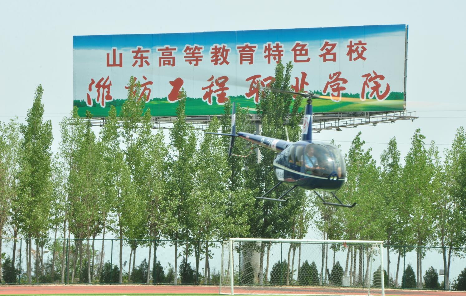 仪式结束后,与会领导共同前往航空工程学院实训基地参观了学生实训设备,观看了我院罗宾逊R44直升机飞行表演。