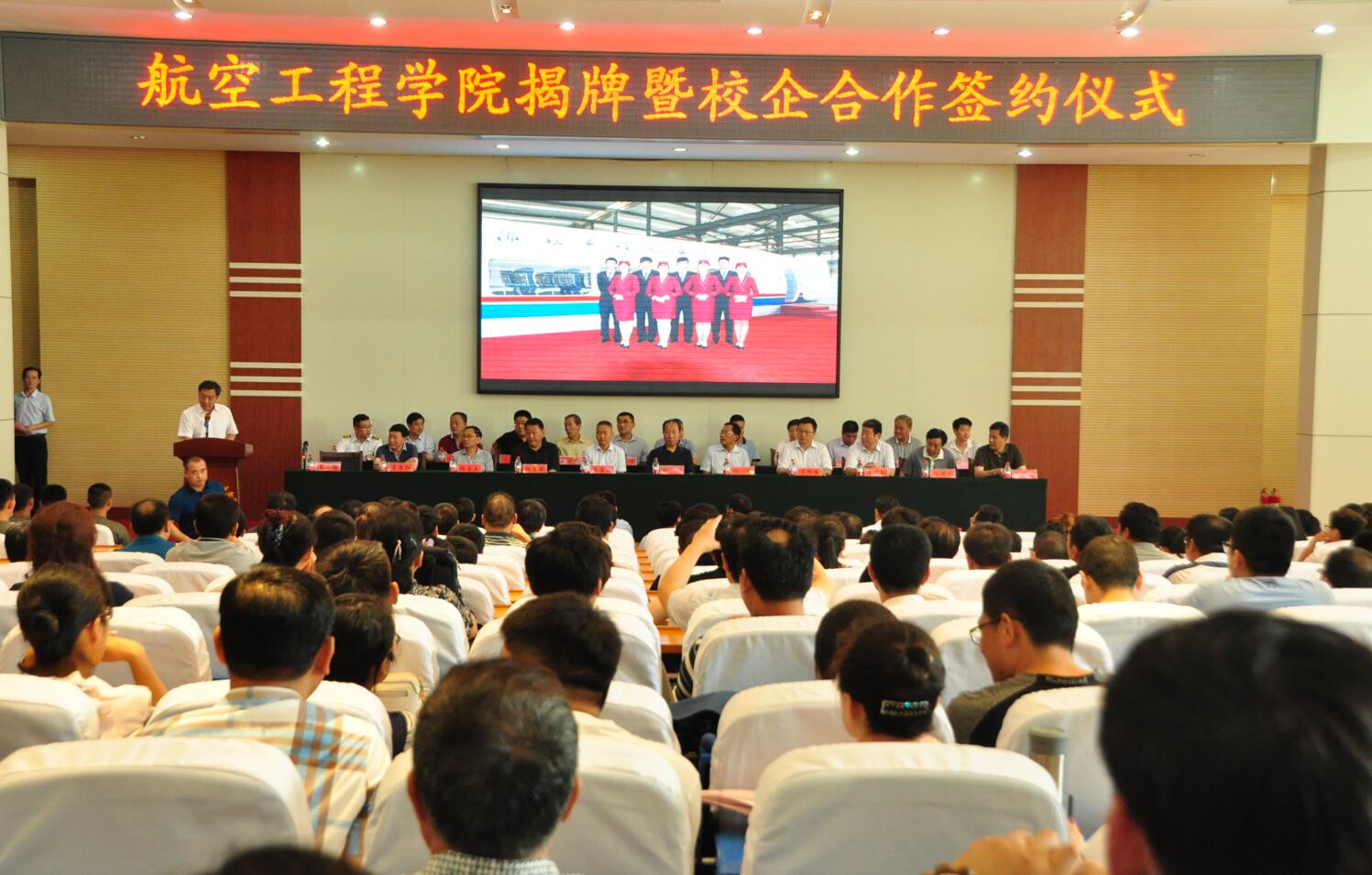 7月14日上午,潍坊工程职业学院航空工程学院揭牌暨校企合作签约仪式在学术报告厅隆重举行。中国民航山东空管局副局长杨峰和我院党委书记肖明胜为航空工程学院揭牌。院长高立伯主持仪式。副院长王金明代表学院与山东新锐通航、北京庆秋航空正式签约。
