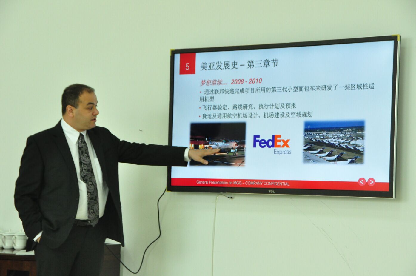 会上,王金明首先代表学院对客人的到来表示欢迎。他向客人介绍了我院的办学历史、办学理念、人才培养模式、航空专业群建设等情况。他说,双方的洽谈将是一个良好的开端,在航空领域开展广泛、深入、全面的合作,必将为推动我院特色办学工作的开展、为中国航空事业培养高质量的专业人才起到积极作用。