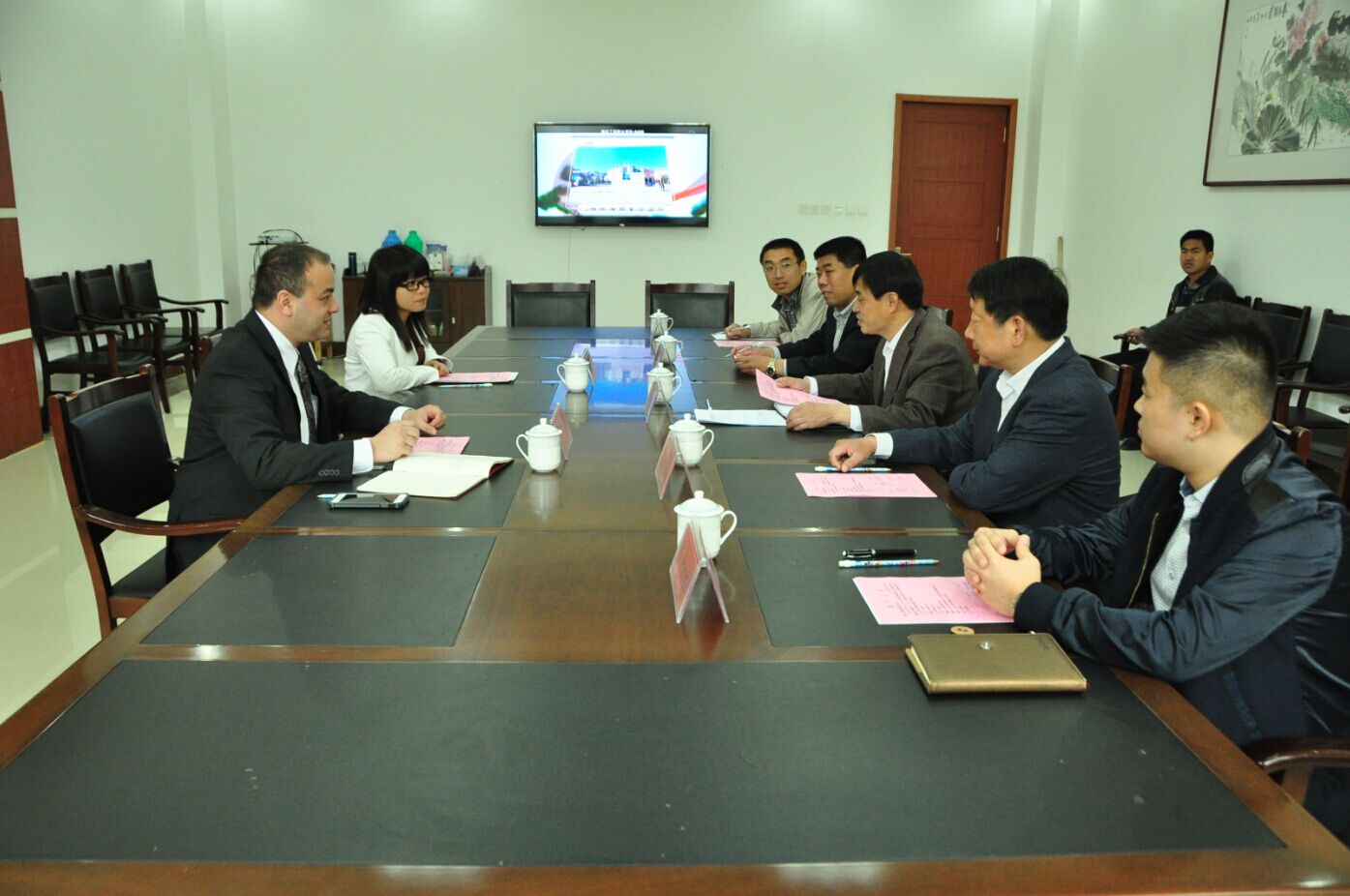 4月26日上午,美国美亚环球集团有限公司总裁Roland Nissim(罗兰尼西)以及公司政策执行人等一行来我院洽谈航空类专业合作办学。我院副院长王金明接待客人并出席座谈会,潍坊市旅游学校校长、我院党政办公室、经济管理系负责同志等参加座谈。
